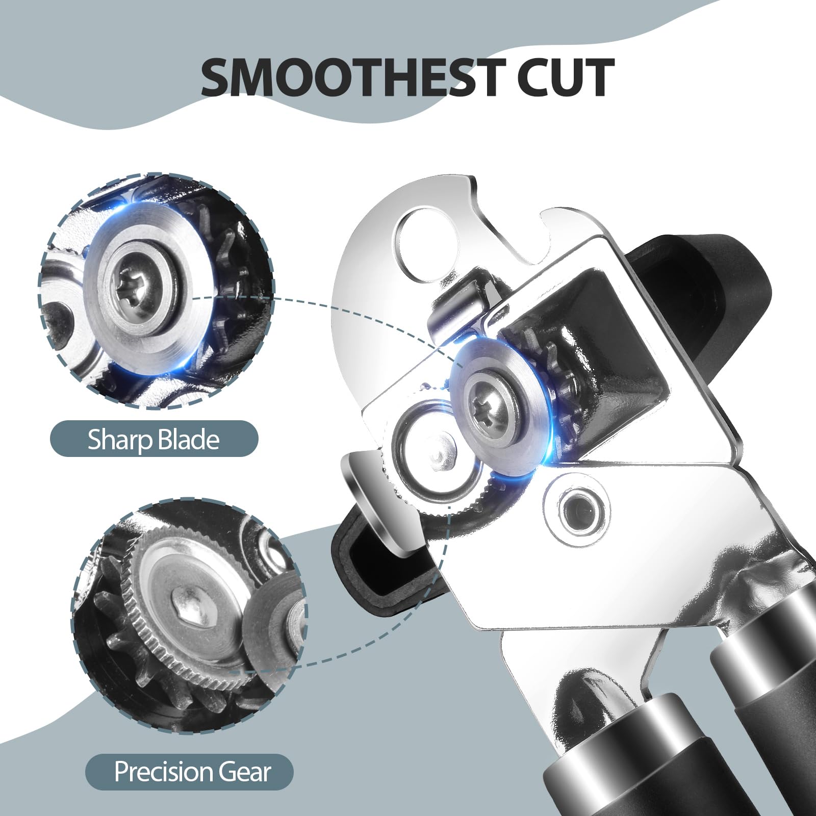 • 【Excellent Quality】Our handheld can opener is made of high quality materials for increased durability and longevity. Food grade stainless steel cutting wheels ensures 100% food safe to you.