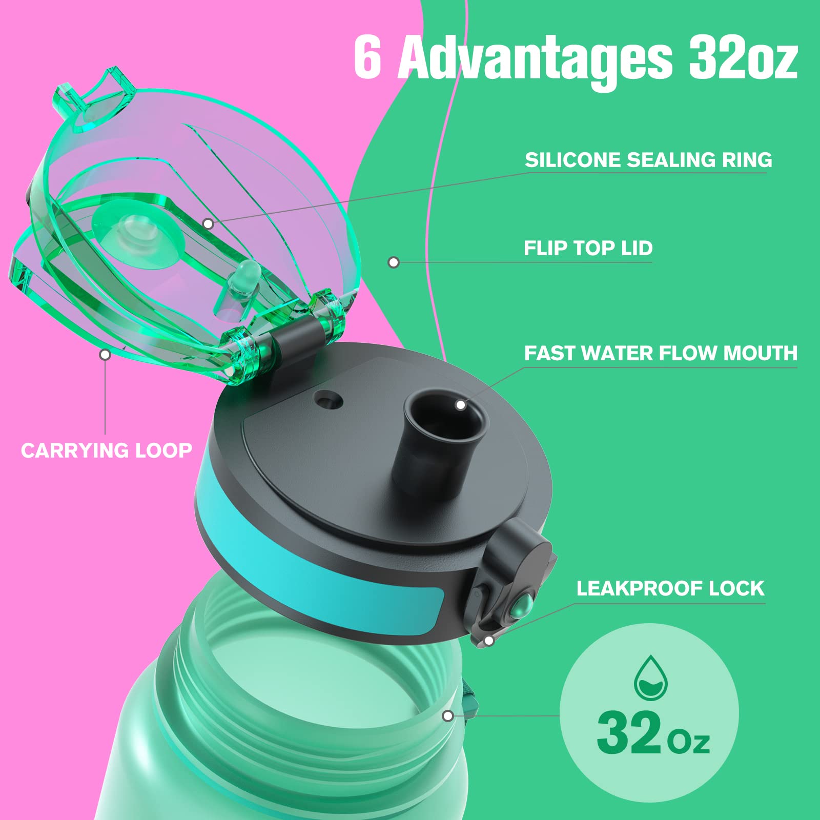 • Easy Open yet Leakproof: this water bottle features a leakproof lid with a flip-lock to avoid leakage when you throw it in your bag. the lid adapts a flip-up mechanism so you can open it easily with only one hand and one press
