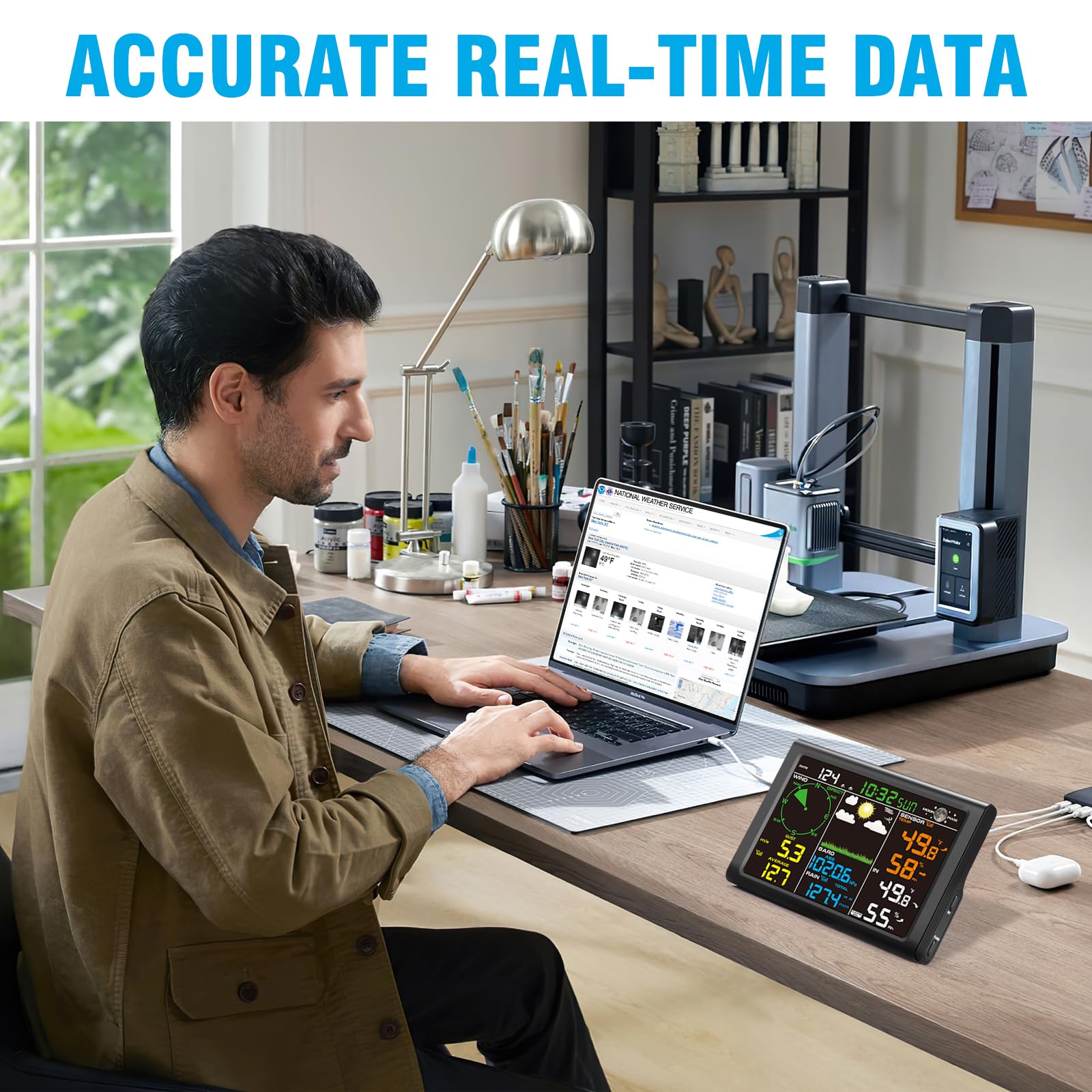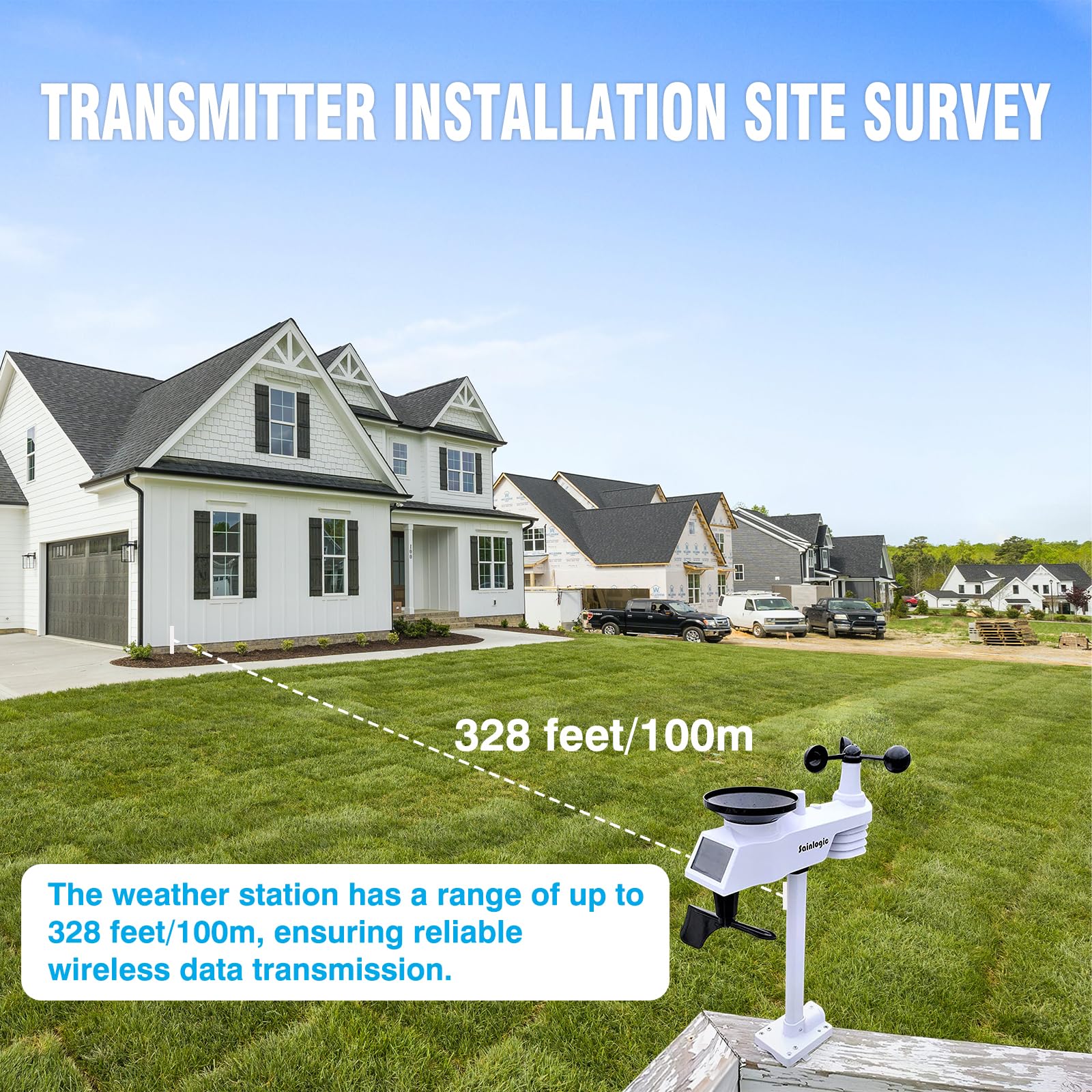 • 【328 Feet Wireless Transmission, Simple Installation】With a range of up to 328 feet, this weather station ensures reliable data transfer without wiring. Easy to install, it's perfect for personal and professional use