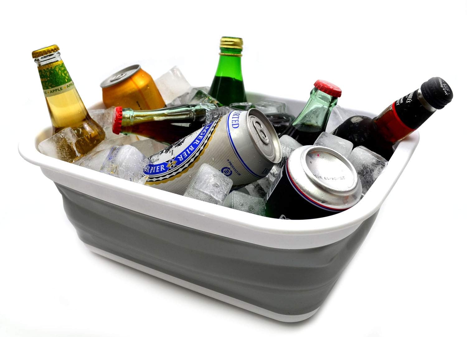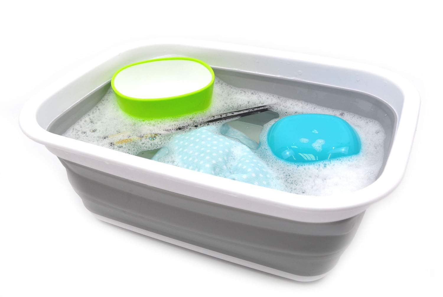 SAMMART 9.2L (2.37Gallon) Collapsible Tub - Portable Outdoor Picnic Basket/Crater - Foldable Shopping Bag - Space Saving Storage Container (M, Gray)