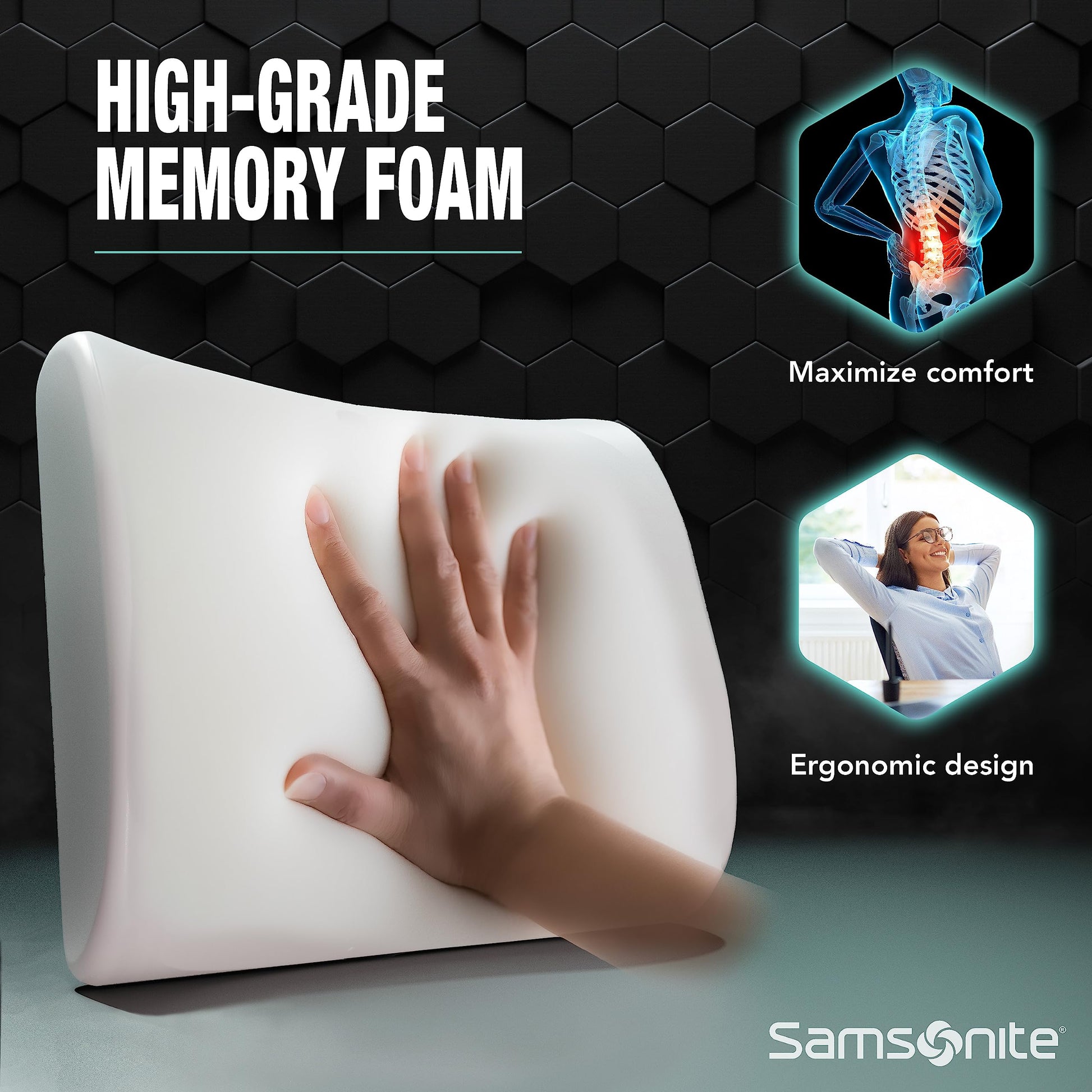 SAMSONITE Lumbar Support Pillow For Office Chair and Car Seat, Perfectly Balanced Memory Foam , Versatile Use Lower Back Cushion
