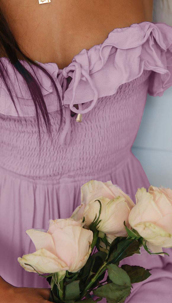 SAUKOLE Women's Summer Sleeveless Strapless Ruffle Off The Shoulder Smocked Swing Cocktail Party Dress Purple