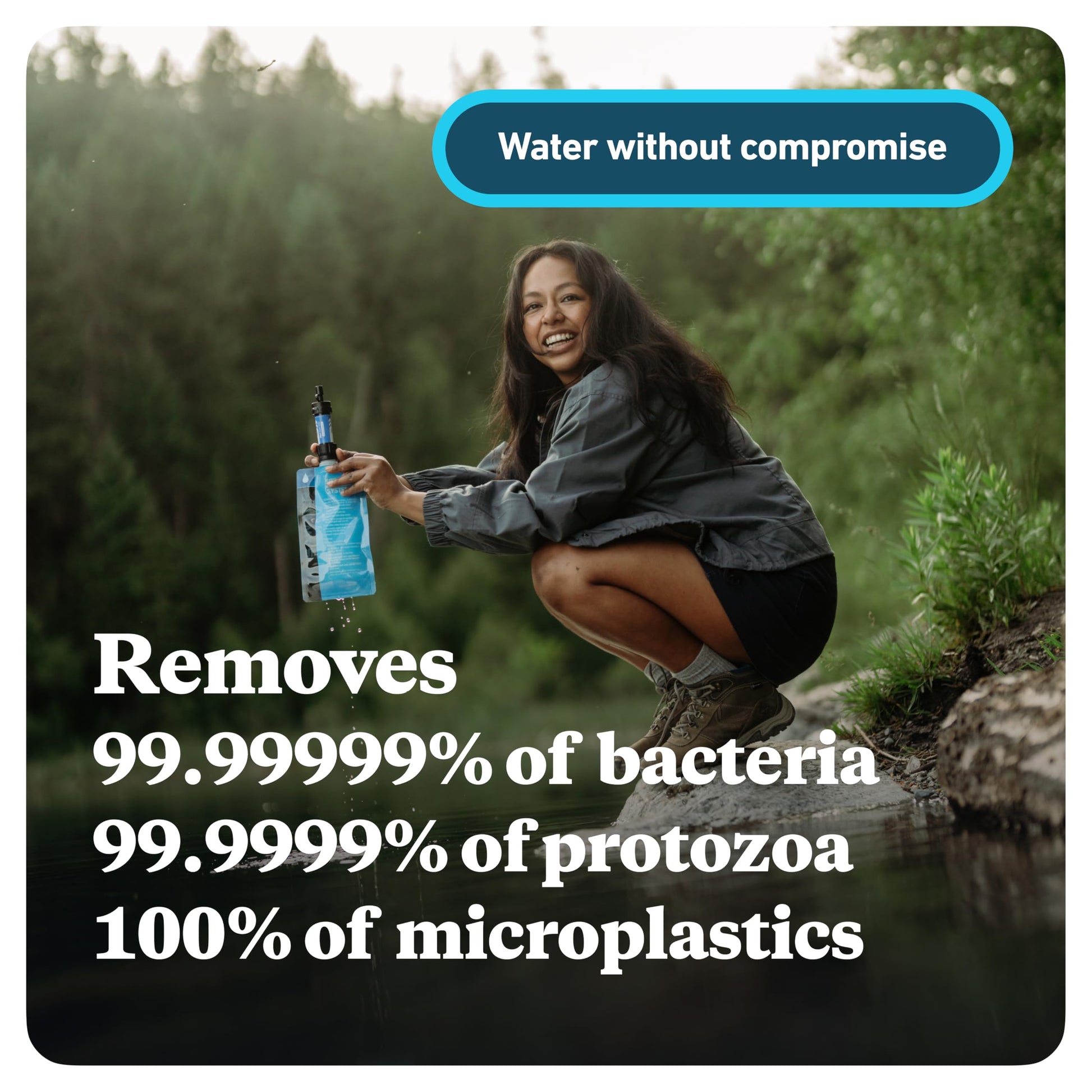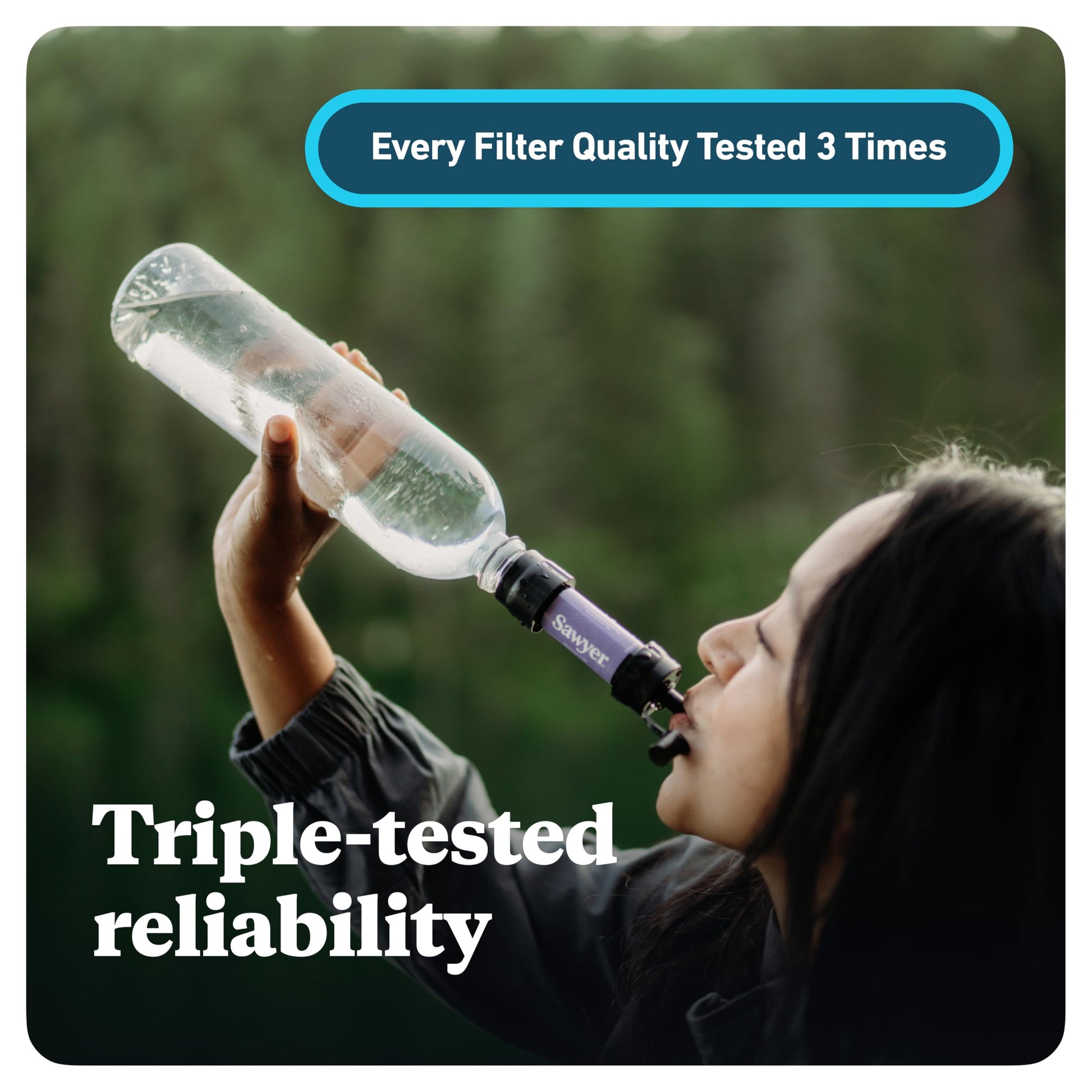 Details: A lightweight, versatile personal filtration system, the Sawyer MINI Water Filter fits in the palm of your hand and has a total field weight of just 2 ounces. Perfect for everything from camping with the kids to traveling abroad where tap and bottle water can't be trusted, the tiny MINI provides 0.1 micron absolute filtration for clean drinking water on the go — filtering out bacteria, protozoa, and microplastics. The MINI filter removes 7 log (99.99999%) of all bacteria (like Salmonella) as well as other harmful bacteria which causes Cholera, Leptospirosis, and E. coli and 6 log (99.9999%) of all protozoa such as Giardia and Cryptosporidium (independent testing laboratory Hydration, LLC.; microbiological report S05-03). These removal rates equal or exceed other filter options. EPA guidelines allow ten times more protozoa left in the water than Sawyer MINI filters allow. The MINI also filters out 100% of microplastics. The MINI 0.1 micron absolute filter houses a cluster of micro-fibrous tubes which use similar technology found in medical dialysis. As water passes through the side walls of the tubes, harmful bacteria and protozoa are trapped on the outer walls so you can be confident your water is safe to drink. Great for outdoor recreation, hiking, camping, scouting, domestic and international travel, and emergency prepping, the Sawyer MINI gives you a number of ways to access clean water. Attach it to the included drinking pouch, use the included straw to drink directly from your water source, connect it to hydration pack tubing (sold separately), or screw it onto standard disposable bottles (28mm thread). Sawyer Products has offered the best, most technologically advanced solutions for protection against sun, bugs, water, and injuries – everything from first aid kits developed for wilderness to point-of-use water filters that filter contaminated water to levels cleaner than U. S. bottled water.