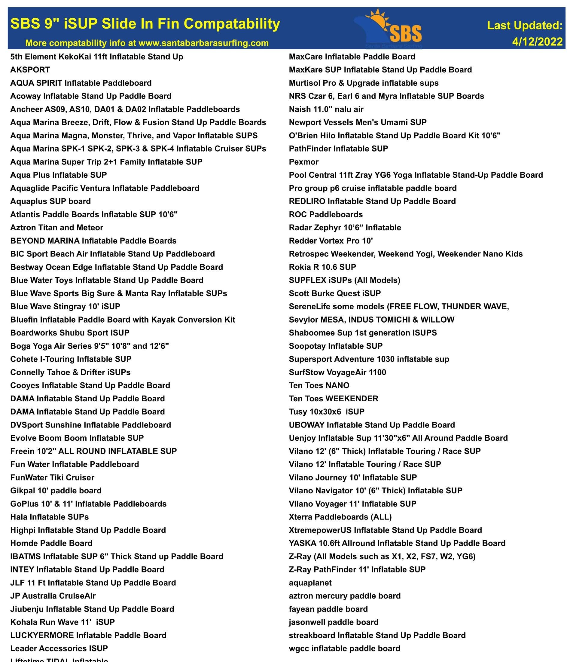• PLEASE REVIEW OUR COMPATIBILITY LIST: This is a 'Slide In' fin for some inflatable paddleboards. See our compatibility list in the photos for what boards this fits. Some examples: Aqua Marina, Vilano, Cohete, etc.