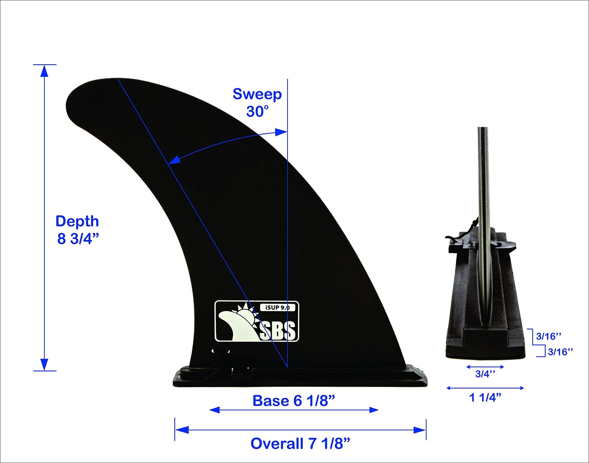 SBS 9" iSUP Fin - Quick Release Slide in Fin for Inflatable Paddleboard (Aqua Marina, Vilano, etc)