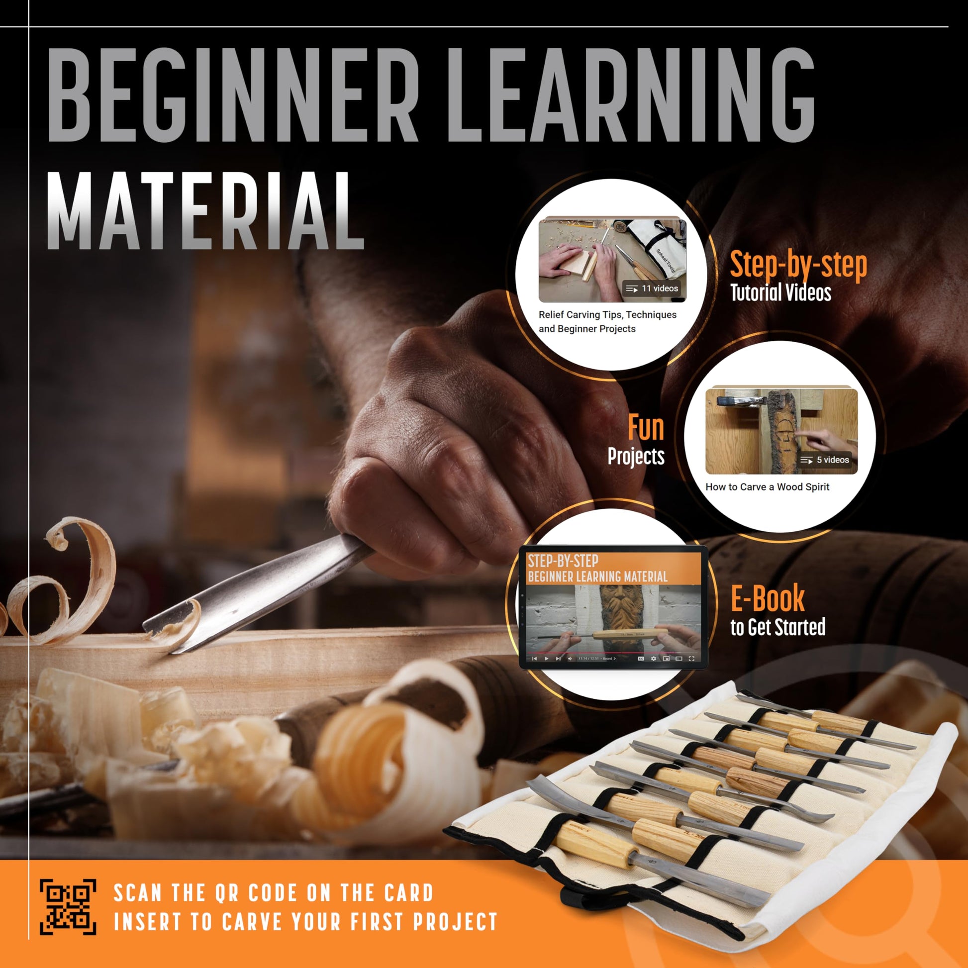 • Wood Carving Instructions – Beginner Learning Videos and eBook are included with helpful info about how to sharpen and care for your carving tools, along with other carving tips and techniques and fun carving projects