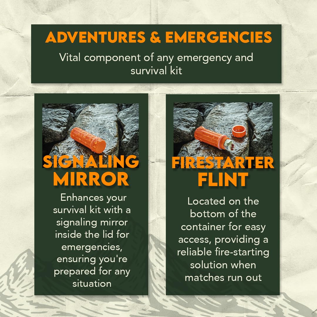 • Integrated Firestarter Flint: Located on the bottom of the container for easy access, providing a reliable fire-starting solution when matches run out