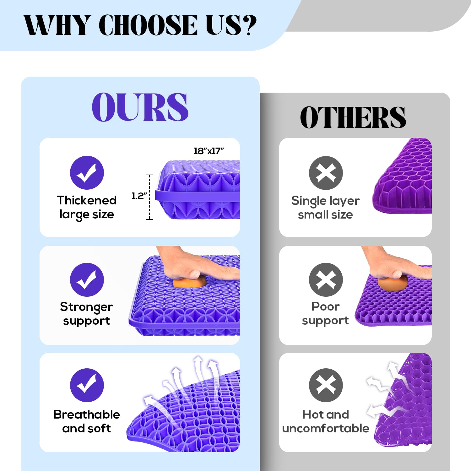 Seat Cushion, Thickened Big Gel Seat Cushion, Strong Support, Sciatica & Back Pain Relief, Breathable Cool Suitable as Office Chair Cushion, Car Seat Cushion, Wheelchair Cushions, 2 Non-Slip Covers