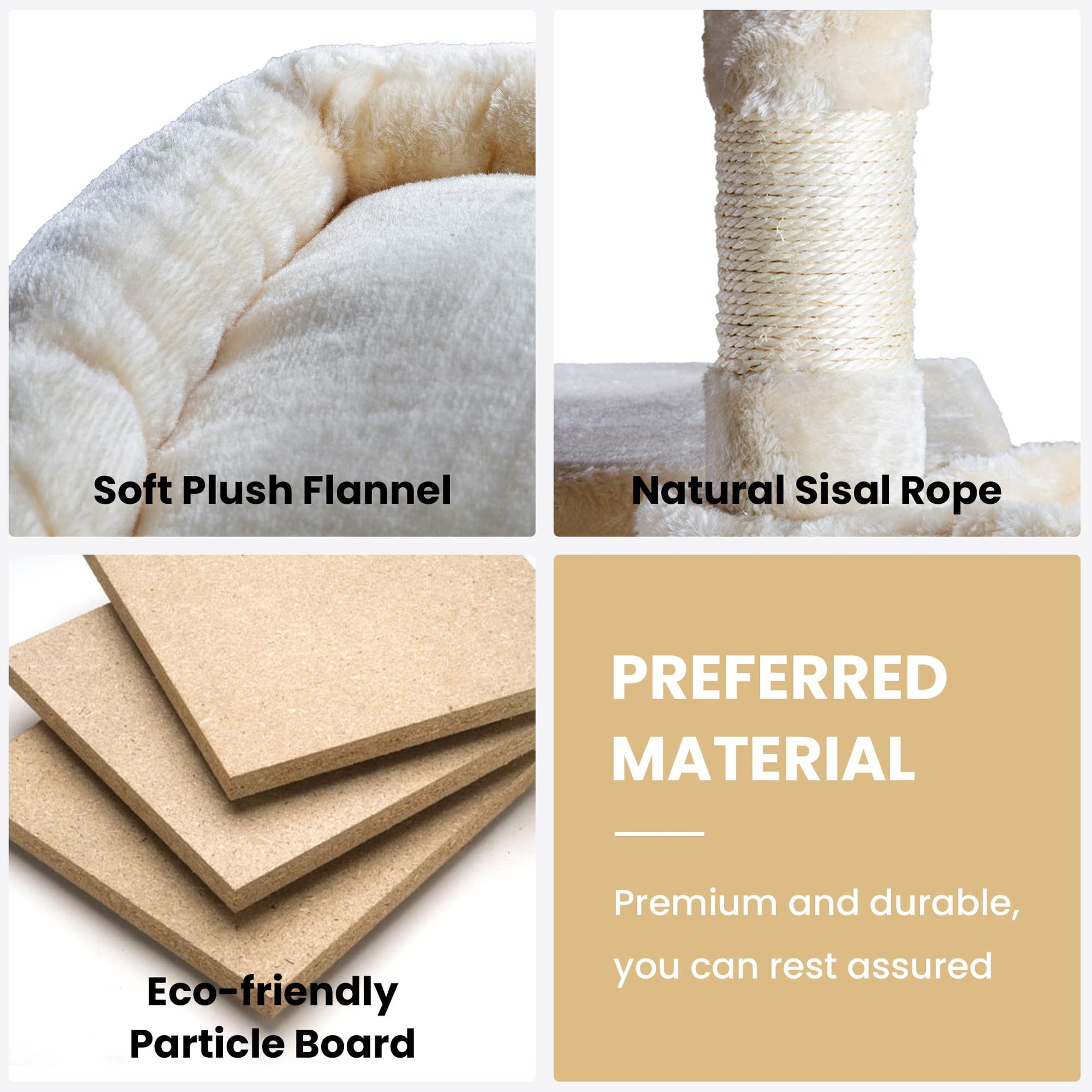 • Solid and Stable: The cat tree is made of high-quality particle board with a plush covering, and the strengthened base is strong enough to support 33 lb