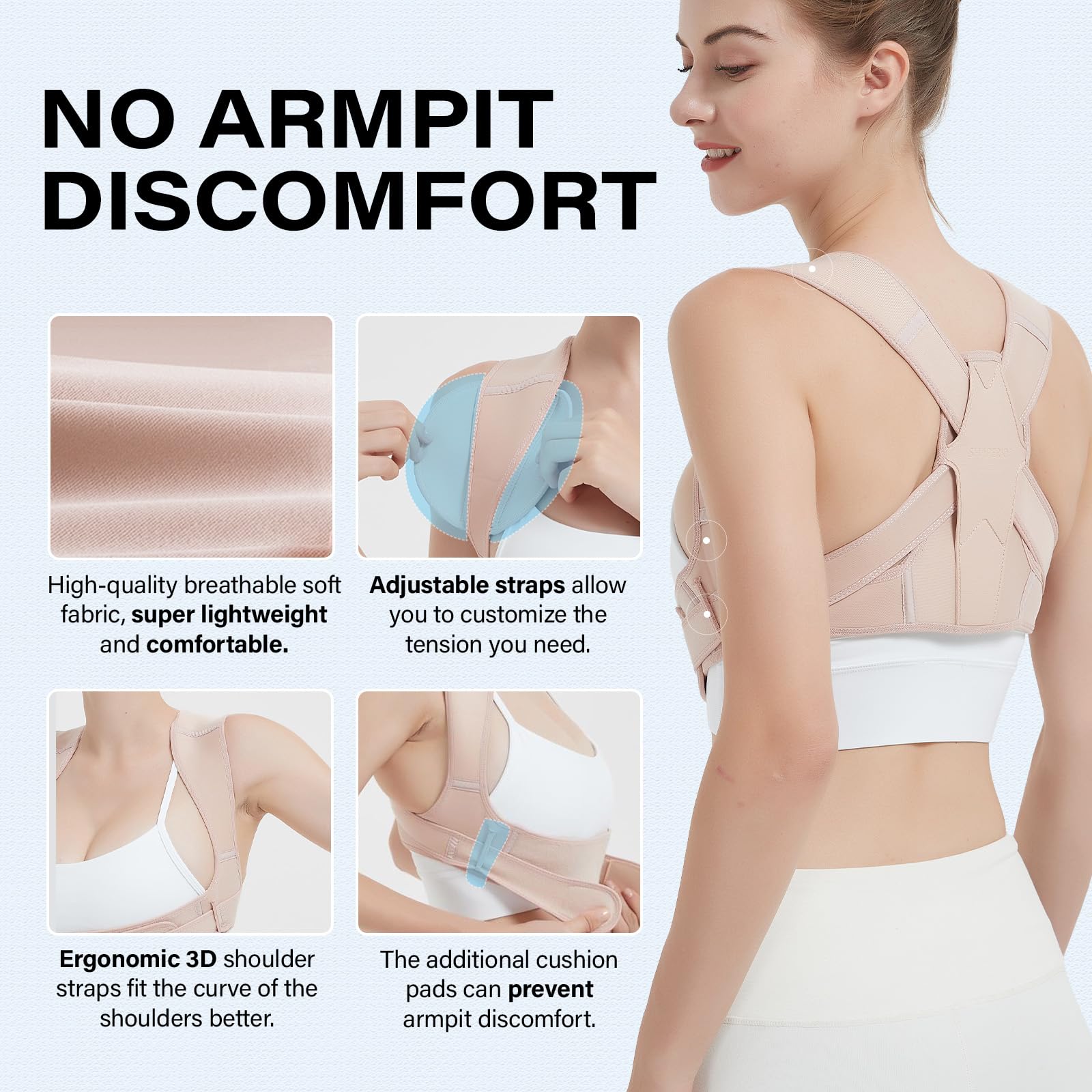 • 【COMFORTABLE to WEAR】High-quality breathable soft fabric, ultra-light and comfortable, allowing you to wear our posture brace at the home, office, or travel! It has an excellent appearance and can be worn outside or underneath clothes. The additional cushion pads can prevent armpit discomfort.