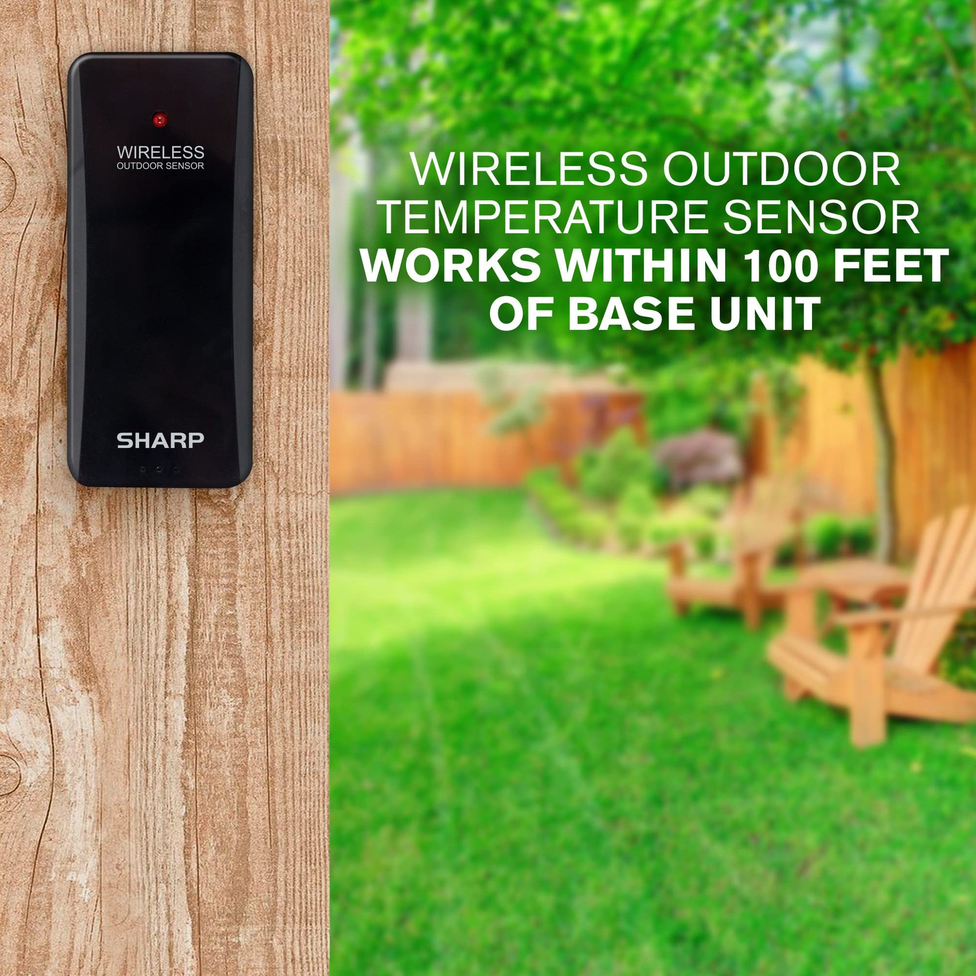 • Wireless Outdoor Sensor: The Wireless outdoor sensor (included) transmits the outdoor temperature to the Atomic Wall Clock. The sensor can be placed anywhere within 100ft of the receiving unit. The wireless technology means no wire installation is necessary. Note: The wireless sensor is included in the box, separate from the clock.