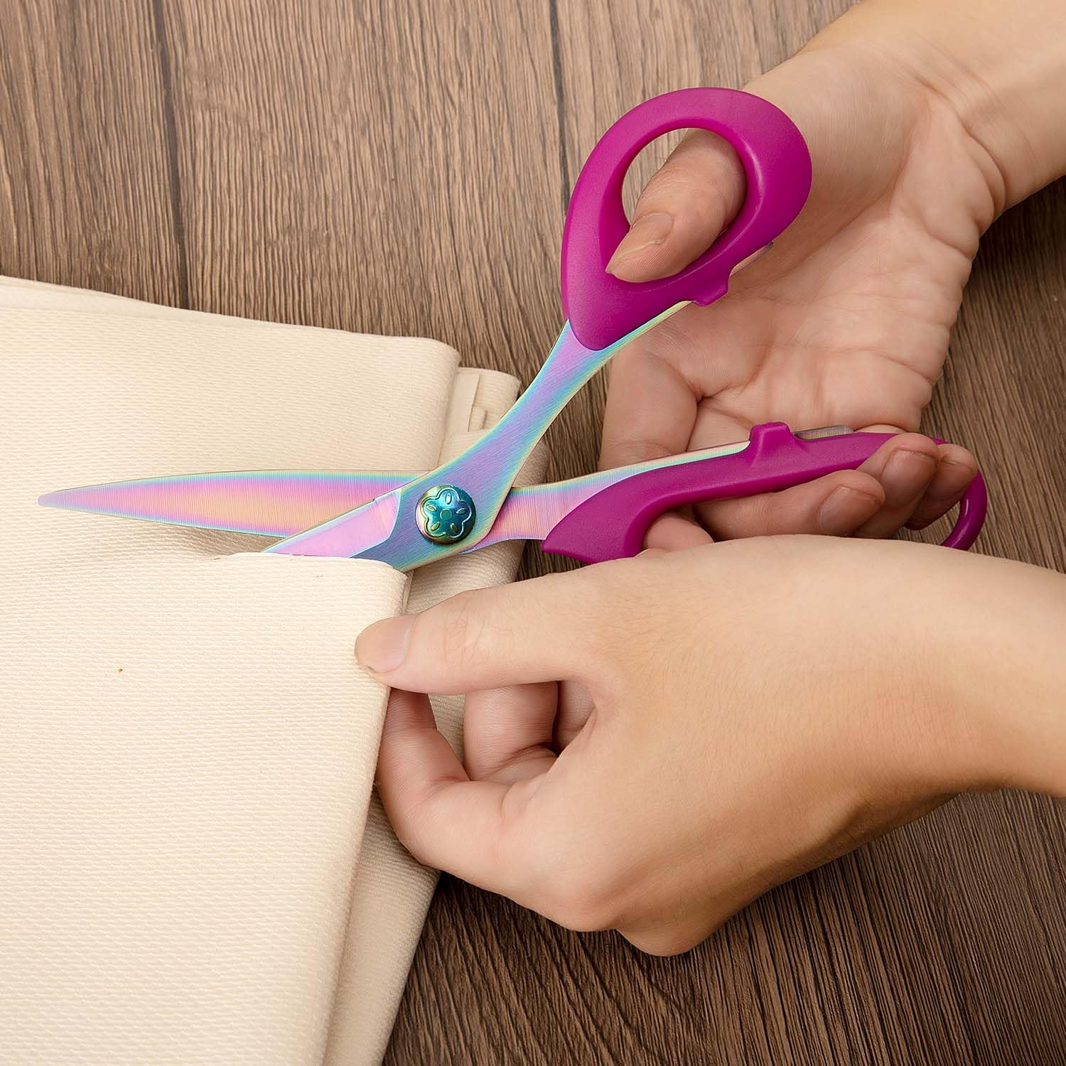 • Heavy Duty All-Purpose Scissors: Ideal for sewing, tailoring, quilting, and dressmaking. Perfect for cutting multiple layers of fabric, clothes, denim, jeans, leather, burlap, canvas, upholstery, vinyl, patterns, alterations, yarn, thread, ribbon, photos for scrapbooking, paper, cardboard, wrapping paper, and other arts & crafts for home or office use