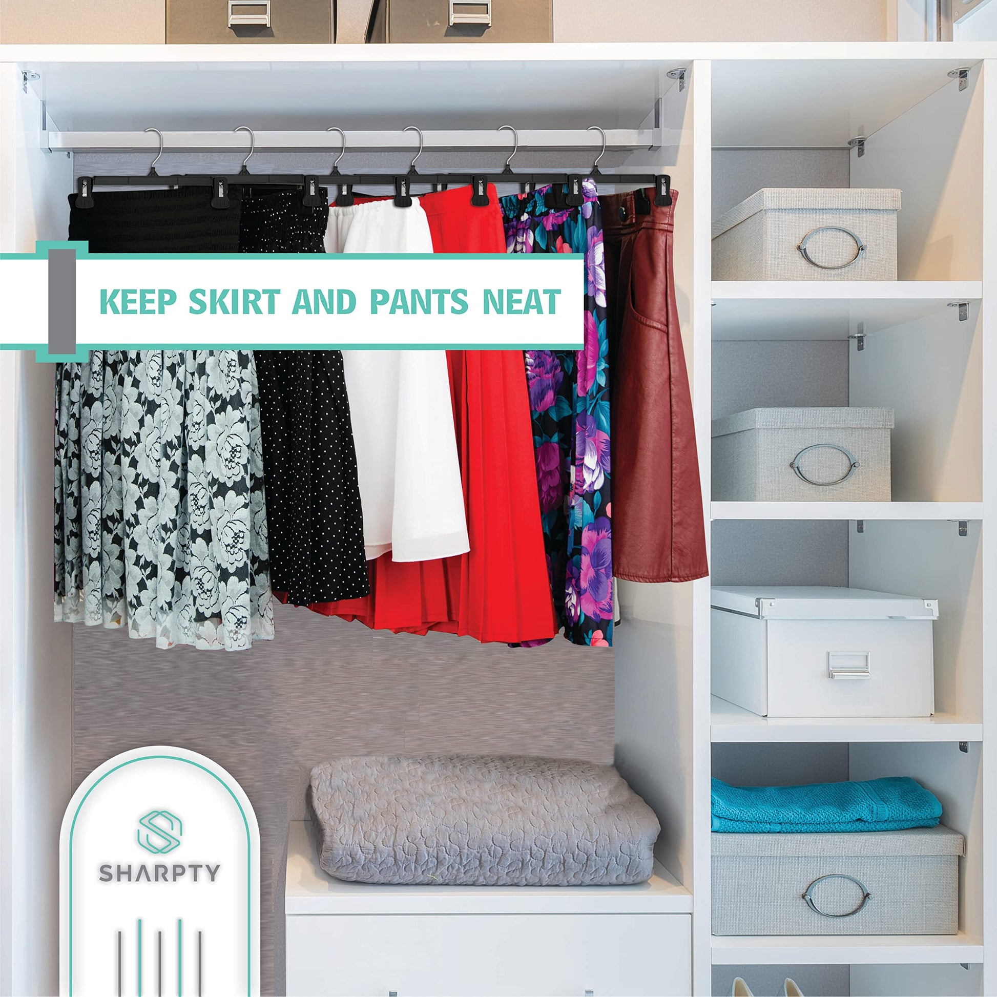 Sharpty Pant & Skirt Hangers - Closet Hangers for Shorts, Shirts, Jeans, Dresses, Slacks, Coats, Clothes, Clothing, Garments & More - Durable, Space Saving & Non-Slip, Black - 10 Pack