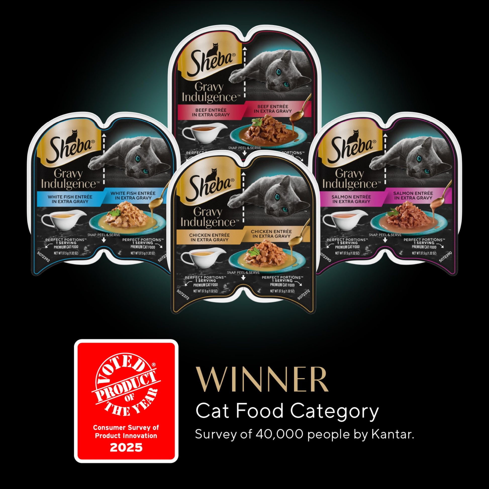 • Extra Gravy, Extra Love: Sheba Gravy Indulgence Wet Cat Food delivers 70% gravy to 30% chunk, serving up extra gravy when compared to Sheba Perfect Portions Cuts in Gravy