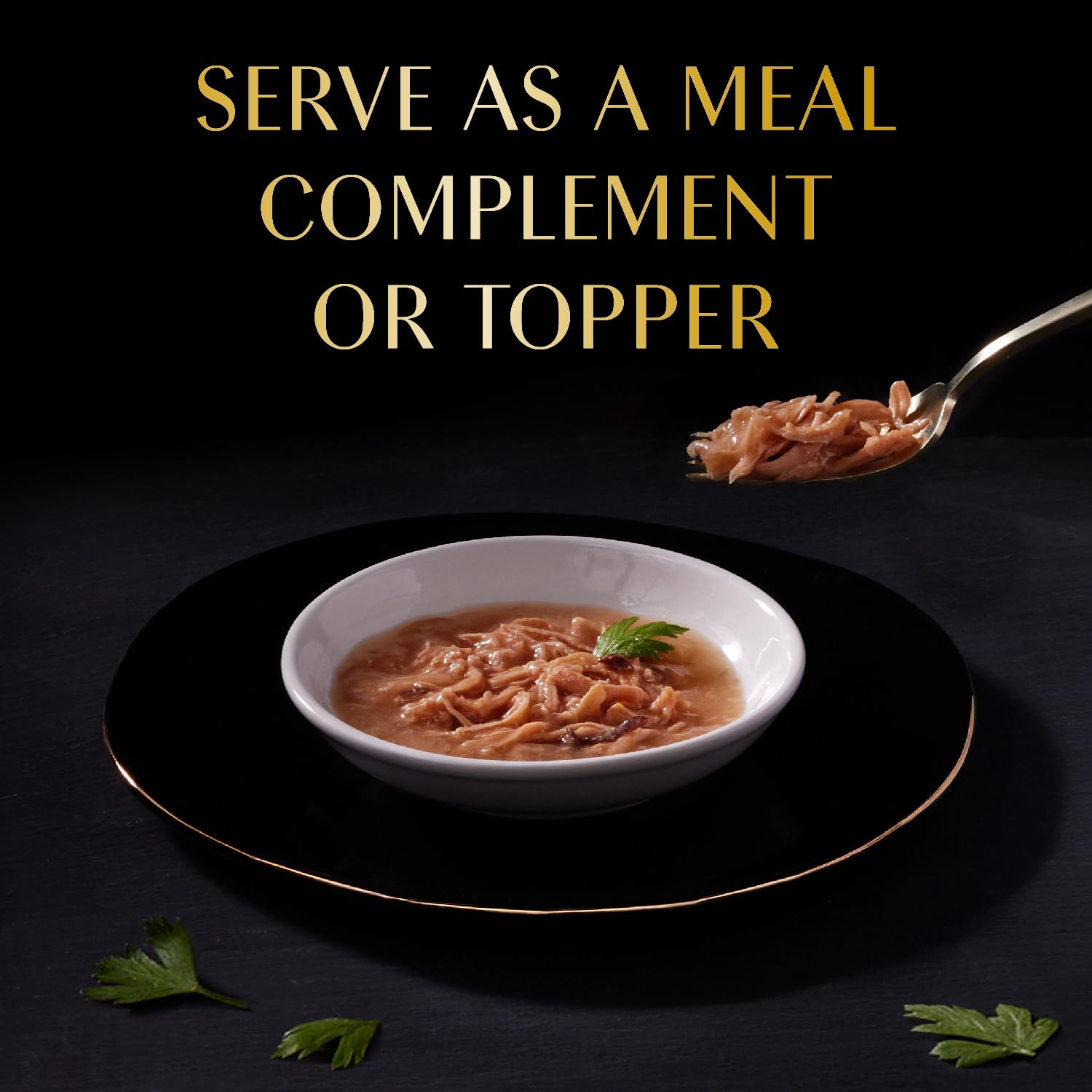 • Gourmet Experience: Your cat will enjoy tender pieces of Chicken and Tuna served in a delicate broth over their cat food or as a stand-alone snack