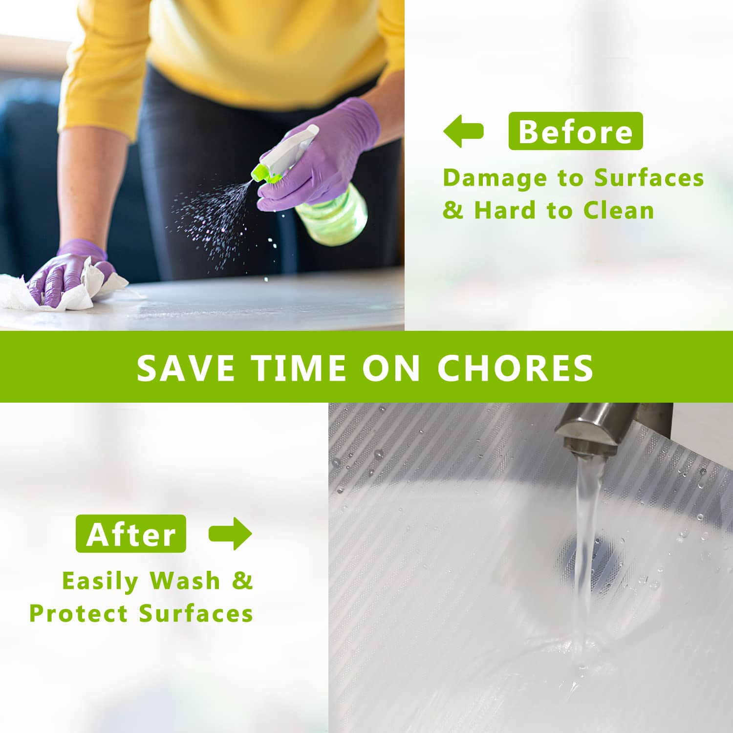 • 🎁【EASY TO CLEAN AND WATERPROOF】The non-adhesive shelf liner can easily be removed from your cabinets and cleaned with mild soap, a damp cloth or sponge when the kitchen shelf liner is stained with oil or other dirt, and dries fast. So you can easily keep them clean. The kitchen cabinet liner is waterproof. So it prevents the cabinets, drawers and refrigerators from getting sticky and greasy.
