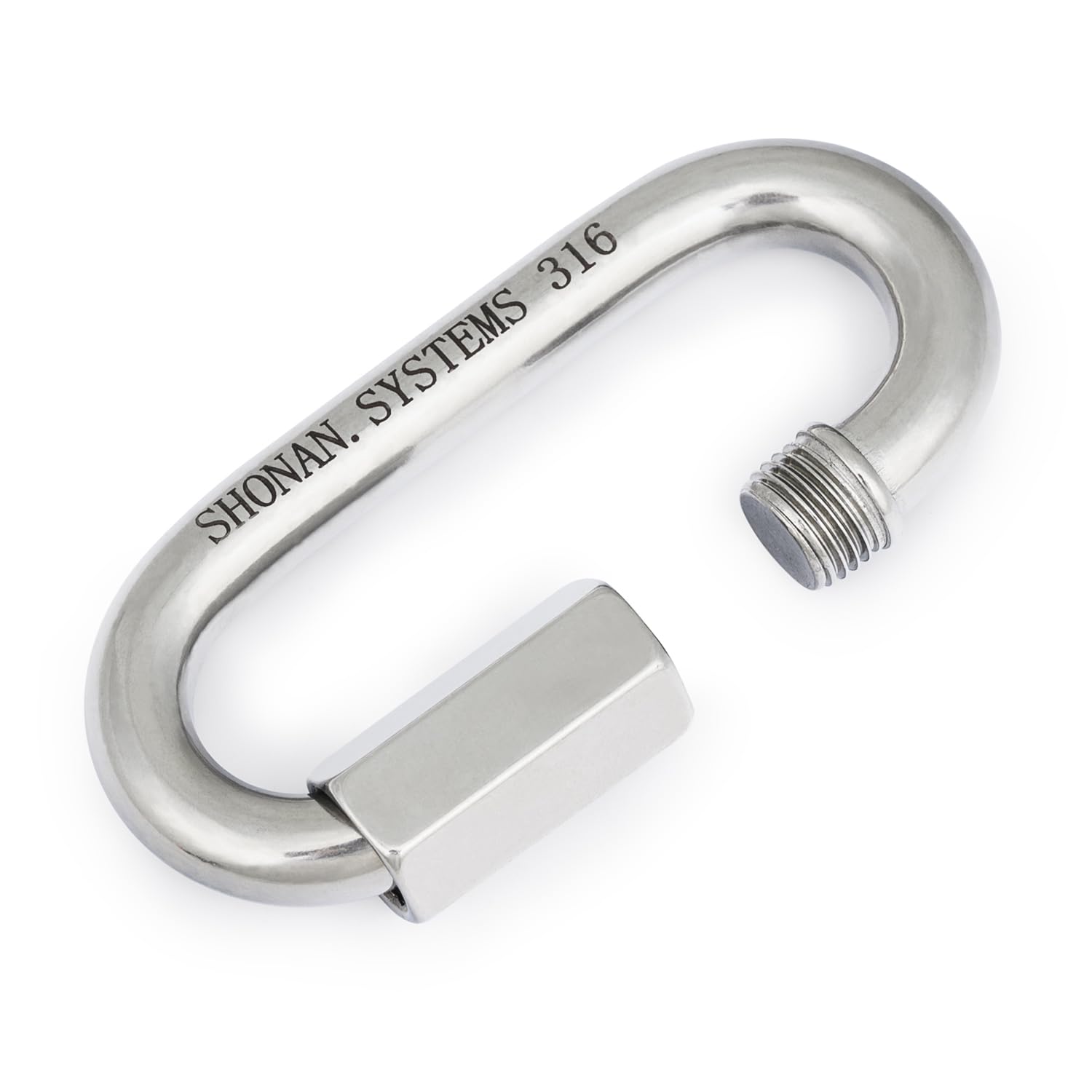 • 316 STAINLESS STEEL: The SHONAN quick link connector (SNQL-01) is made from premium 316 stainless steel for superior resistance to atmospheric corrosion, and both moderately oxidizing and reducing environments. It remains durable even in polluted marine atmospheres.