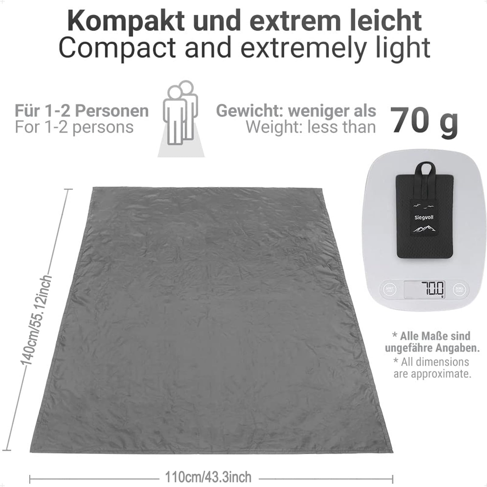 • 🌴Compact and Lightweight: A pocket outdoor mat suitable for 1-2 person, the unfolded size is 43.3x55.12″ (110 x 140 cm), can be put into a storage bag of about 3.94x2.36″ (10 x 6 cm), and weighs less than 70 grams. You can put it in any bag and take it with you.