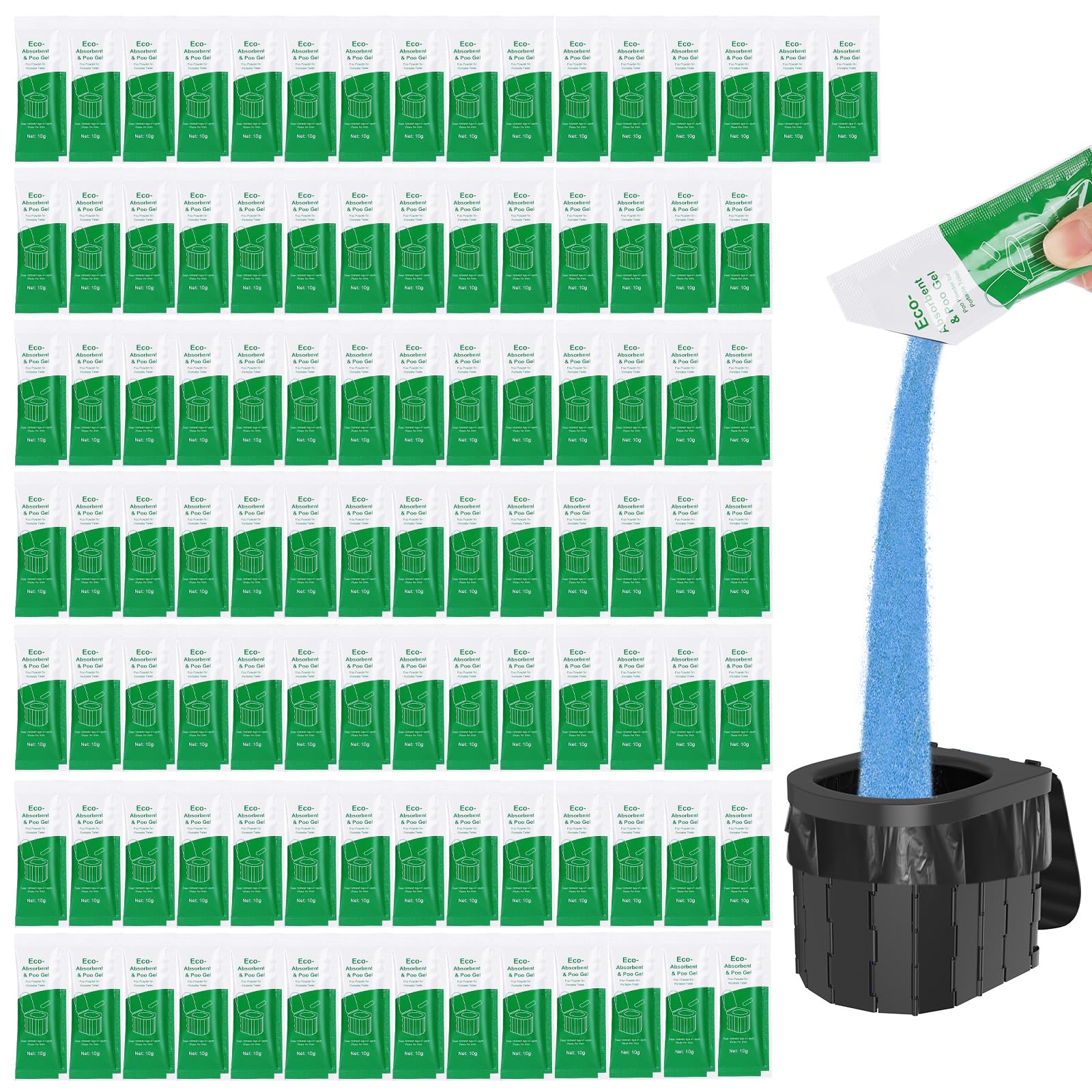 Siewl Portable Toilet Absorbent Gel Powder, Poo Gel for Camping Toilet Powder, Poo Urine Powder for Potty Bags, Poo Deodorizing Treatment for Outdoor Camping Hiking Emergency Toilet (100Pack)
