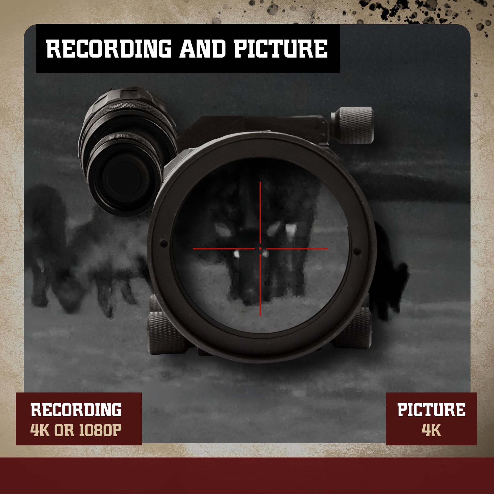• Seamless Transition to Night Vision: With the push of a button, the Wraith 4K seamlessly transitions to digital night vision mode, offering a remarkable 274-meter/300-yard detection range.