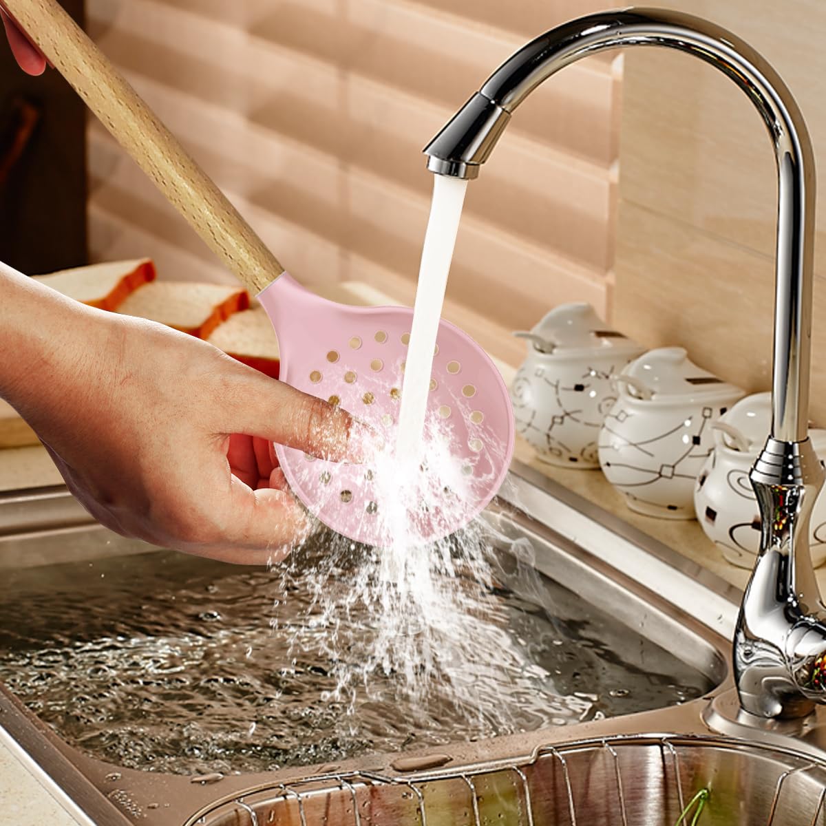 • HEAT RESISTANT & DURABLE: Our silicone kitchen utensils set features upgraded thickened silicone, enhancing durability and elasticity for a smoother cooking experience. Withstands up to 446°F (230°C) without melting or warping, retaining shape even after frequent use. Soft, thick heads protect cookware from scratches, suitable for nonstick pans and daily high-heat cooking