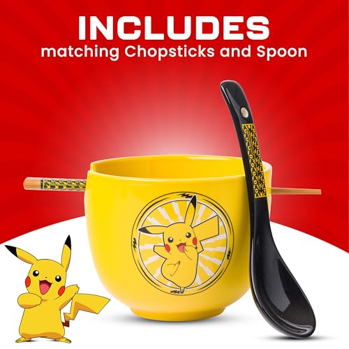 RAMEN BOWL: Step up your ramen game with Pokemon Pikachu Electric Ceramic Ramen Bowl with Chopsticks and Spoon