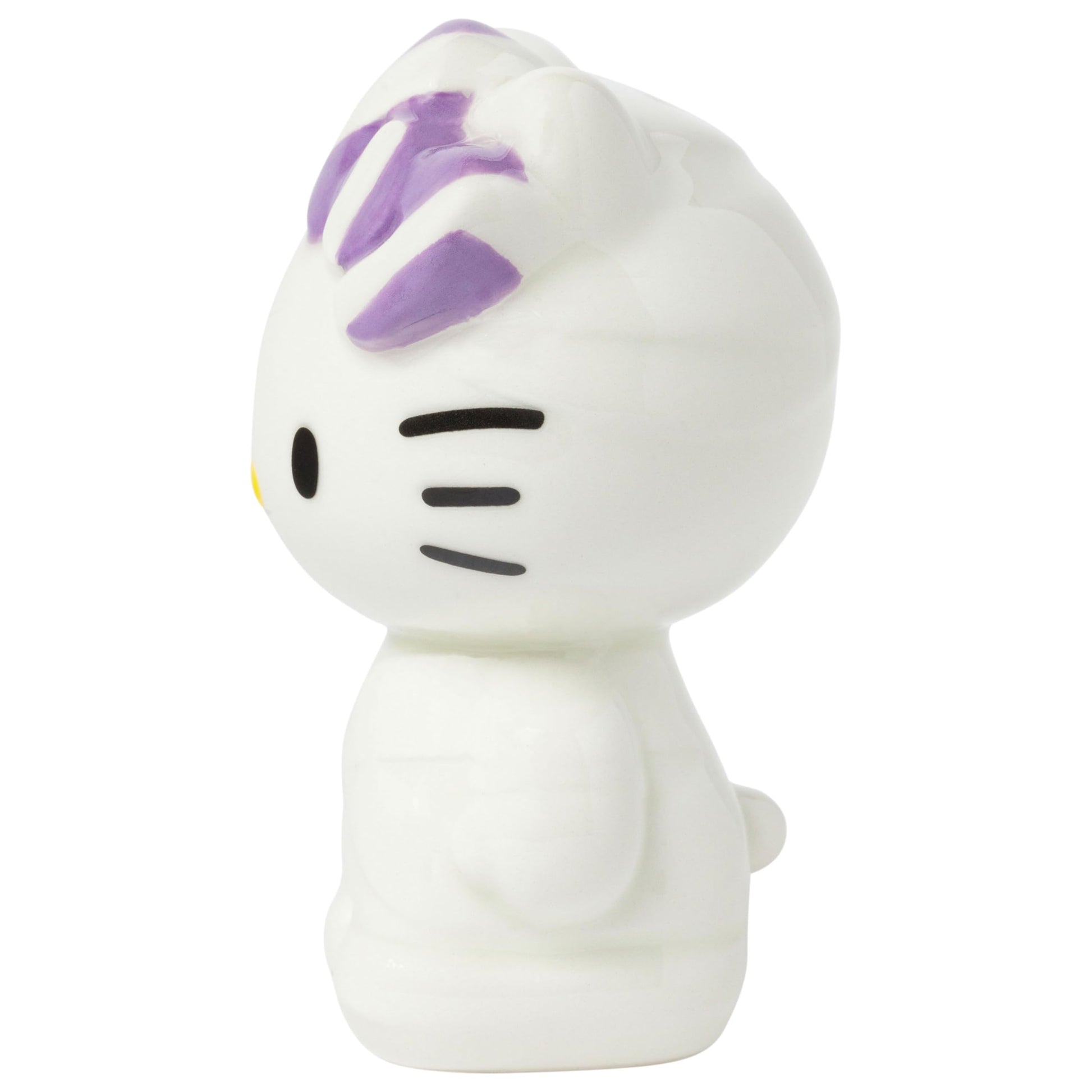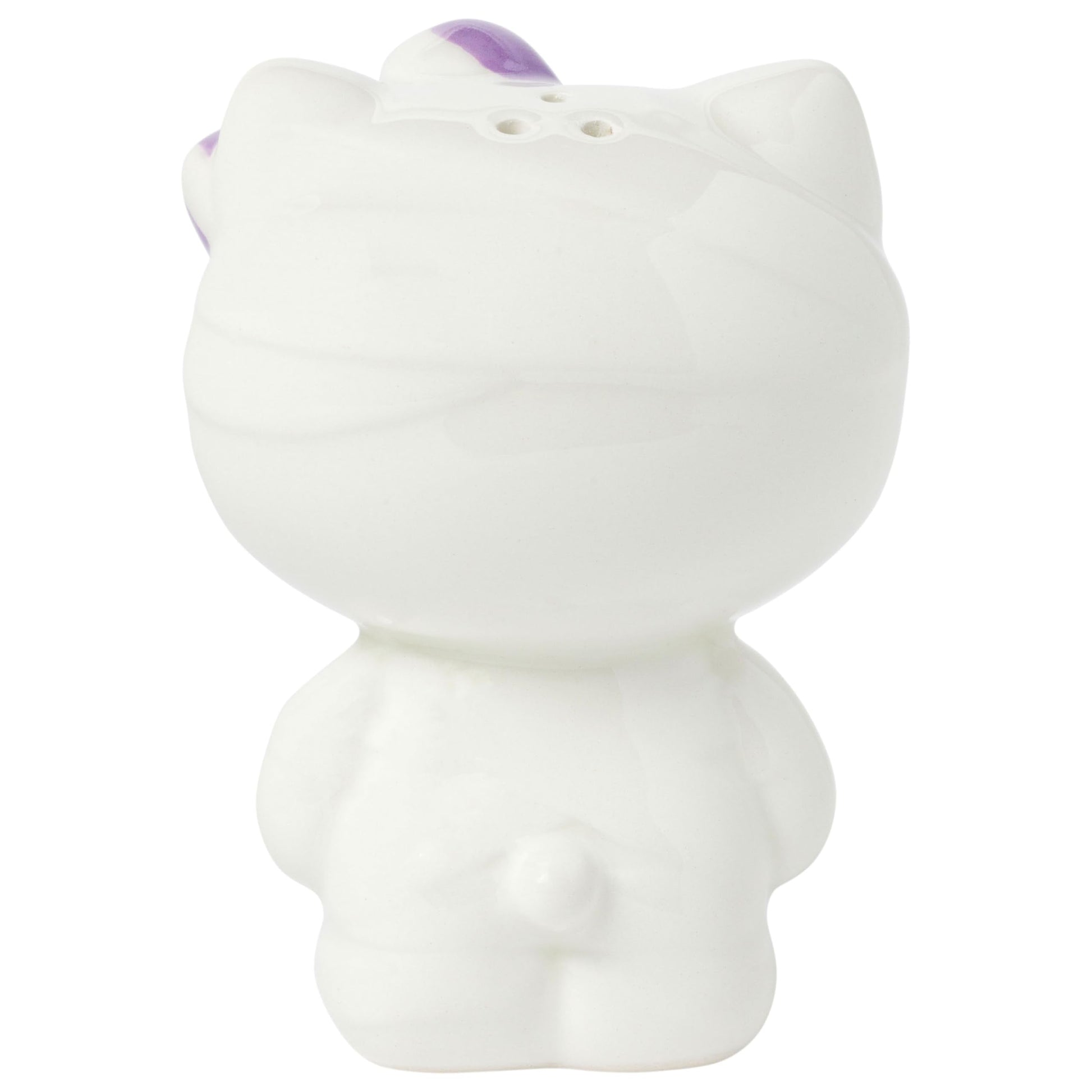 • HELLO KITTY HALLOWEEN: Themed shaker set features Hello Kitty in two different costumes. One shaker features Hello Kitty in a Frankenstein costume with an adorable pink bow and the other shaker features Hello Kitty in a mummy costume with a purple bow.