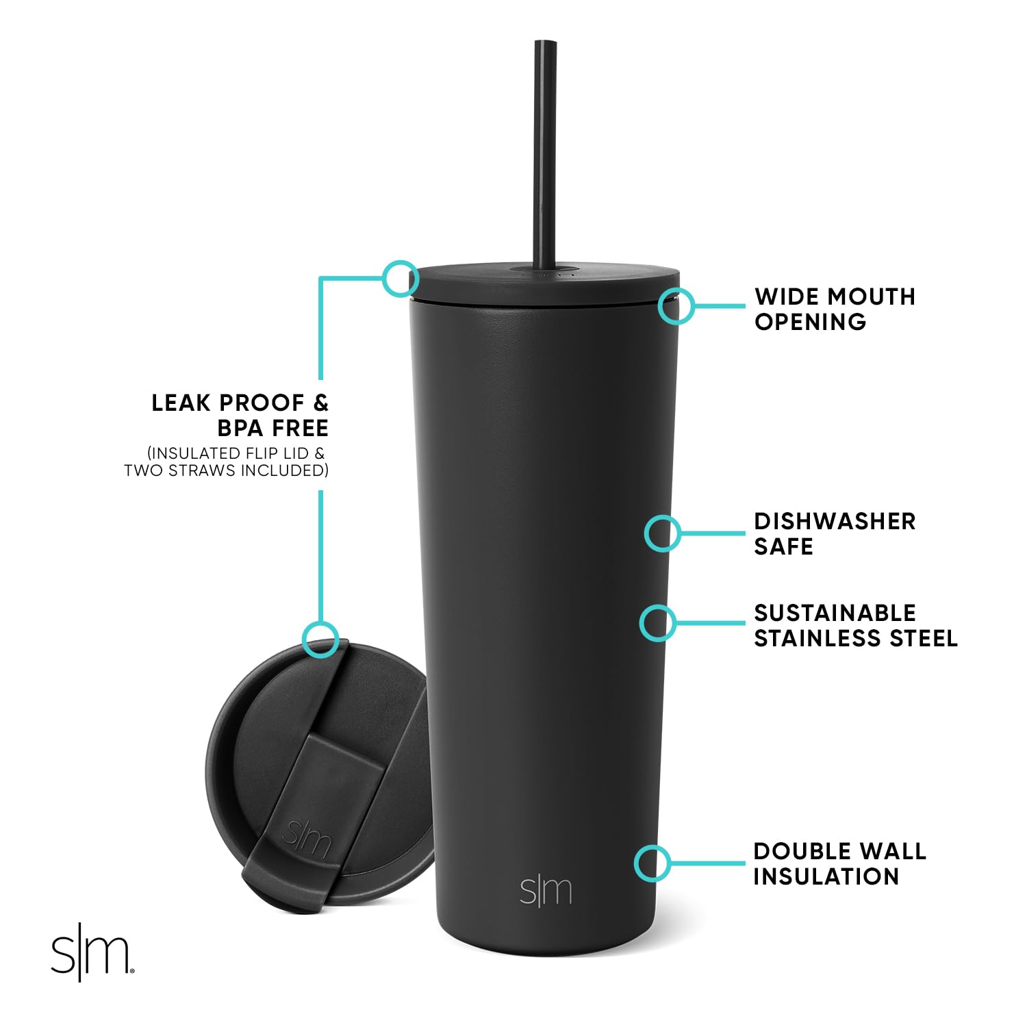 Simple Modern Insulated Tumbler with Lid and Straw | Iced Coffee Cup Reusable Stainless Steel Water Bottle Travel Mug | Gifts for Women Men Her Him | Classic Collection | 24oz | Midnight Black