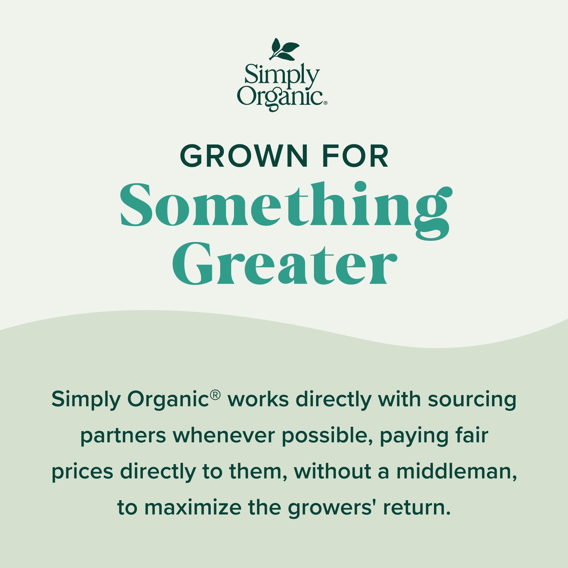 Grown for something greater - Simply Organic works directly with sourcing partners whenever possible, paying fair prices directly to them, without a middleman, to maximize the grower's return.