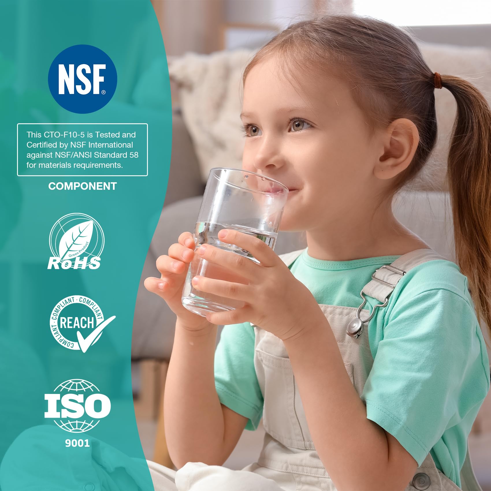 • πŸ’§ [𝐒𝐀𝐅𝐄&π‘π„π‹πˆπ€ππ‹π„] This 5 micron whole house water filter replacement is NSF certified, manufactured with high purity coconut shell activated carbon and wrapped with dense PP food-grade non-shedding fabric, preventing carbon fines from entering the filtered water. Odorless, no leaking or secondary pollution, so that providing you a healthy and enjoyable safe water-filtering experience.