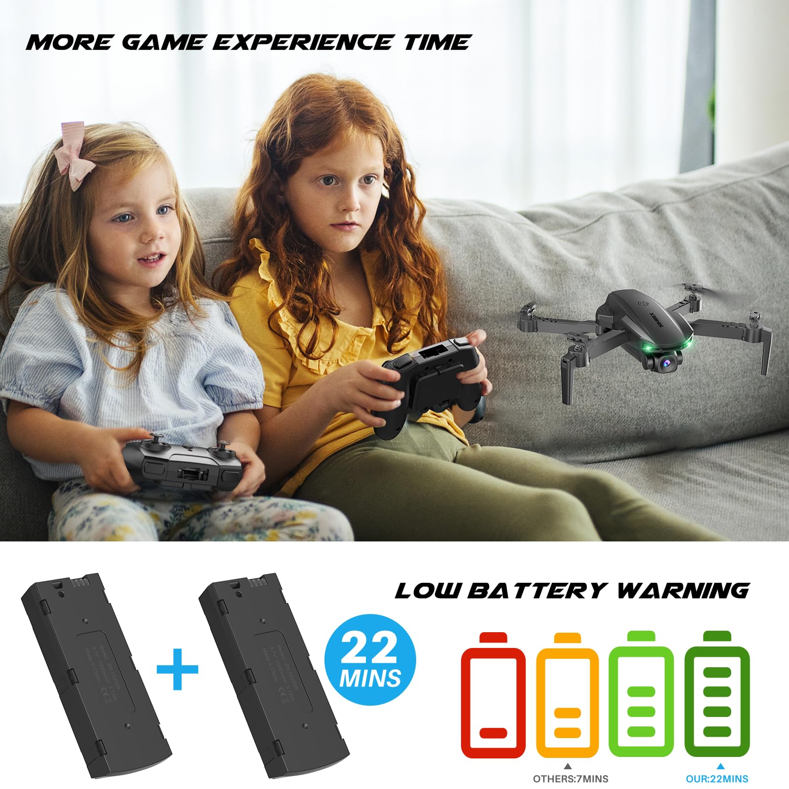 • [Longer Game Experience Time] Our toy drone can fly for up to 22 minutes and is equipped with 2 1000mAh modular batteries. Best drone for ages 14+. It also has anti-interference, low power, and out-of-control protection functions for a safer and more confident flying experience