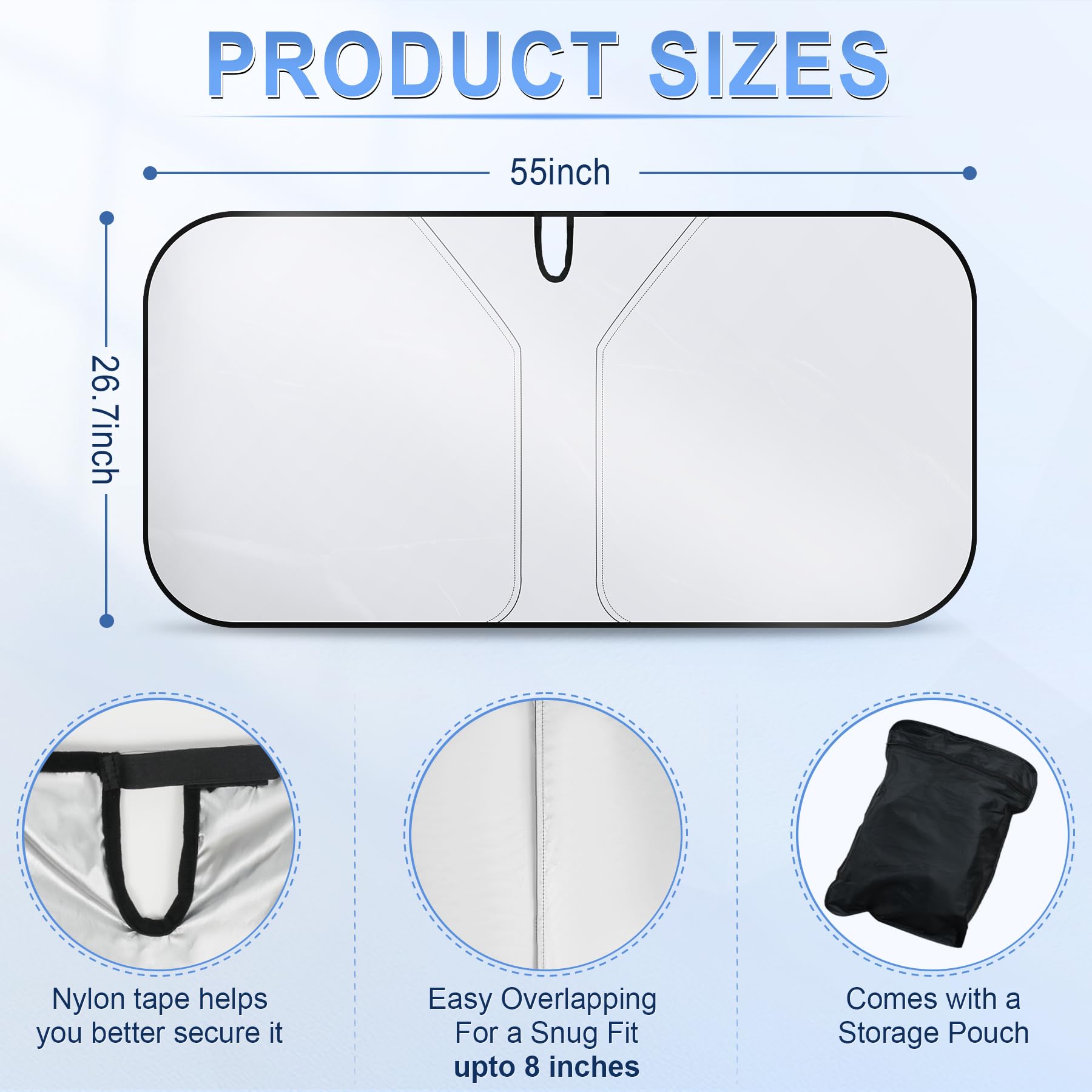 SINGARO 300T Universal Car Windshield Sun Shade, Foldable Reflective for Windshield & Window Shades with Overlapping Design, Car Interior Accessories (55" L x 26.7" W)