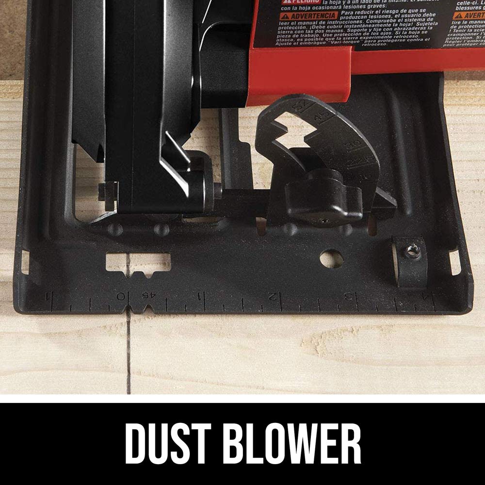 Details: Need a more powerful circular saw for weekend or DIY projects? The SKIL 5180 14-Amp 7-1/4 inch circular saw slices through 2x4's and cuts plywood down to size. The integrated dust blower keeps the line of cut sawdust-free so you can get the job done easily and accurately. The 51-degree bevel with positive stop at 45-degree, gives you a wider variety of angle and miter cuts. At 7.2 pounds, it's lighter than its predecessor and has been updated with a spindle lock for easier blades changes using the on-tool wrench.