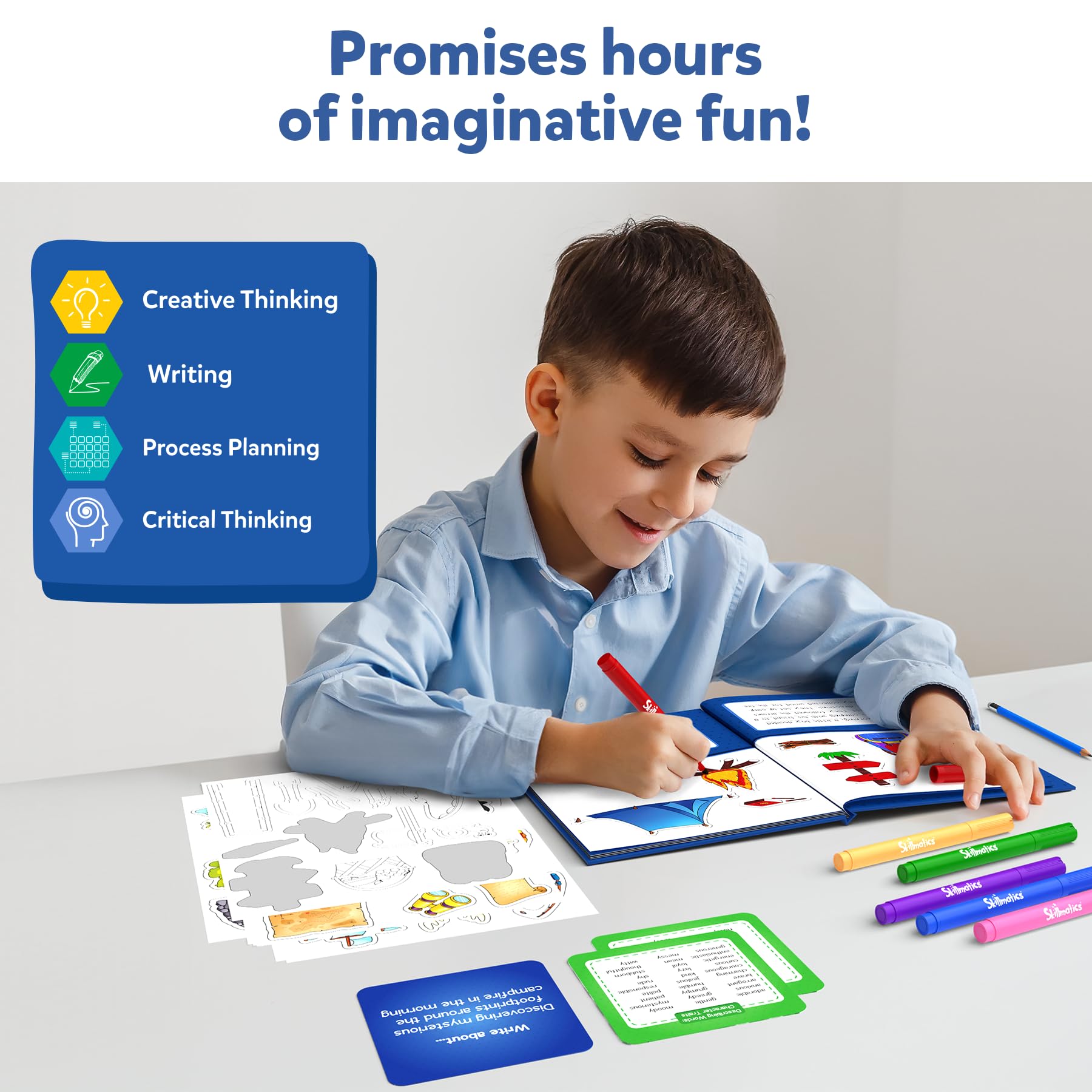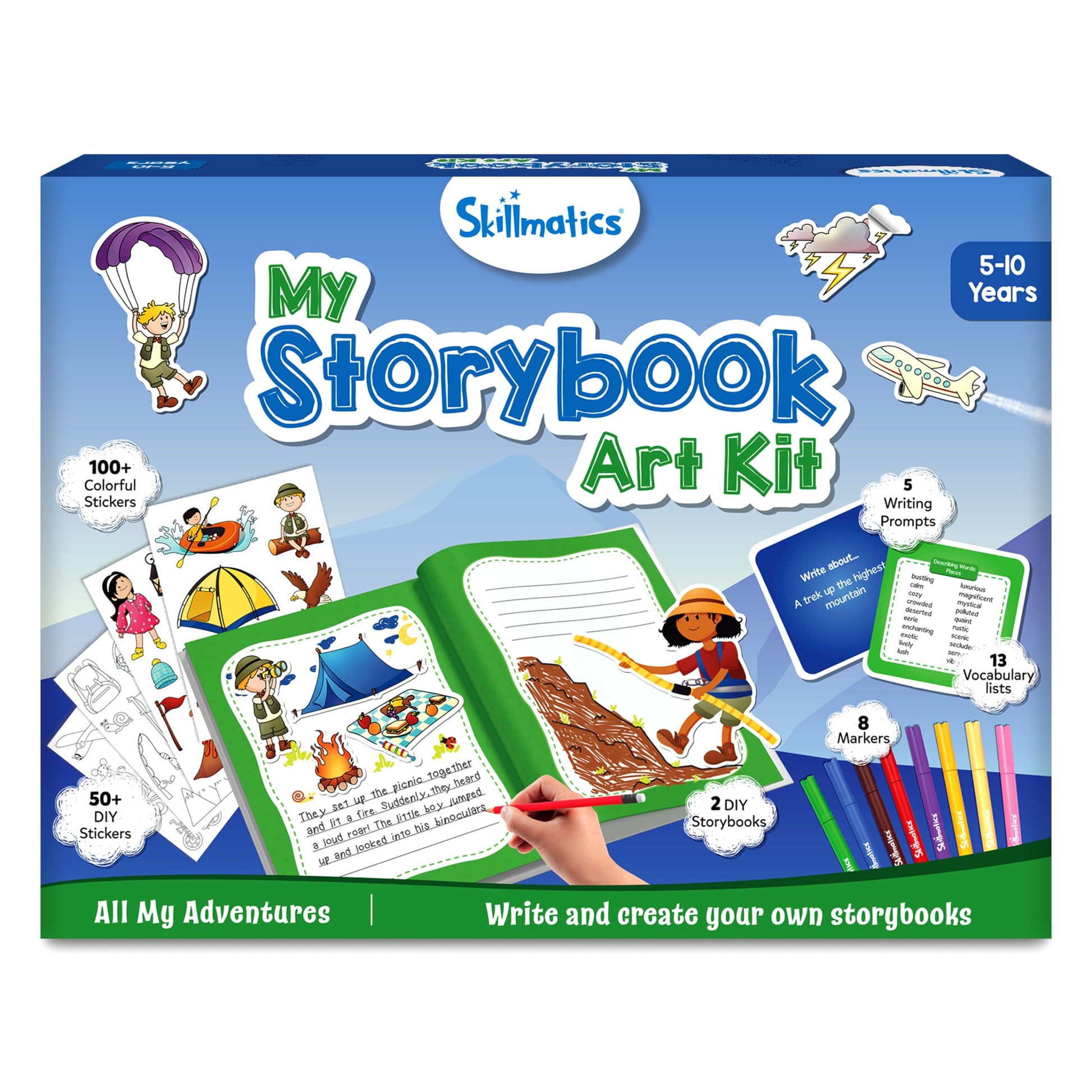 • CREATE YOUR OWN STORYBOOKS: Step into a world of adventures and endless imagination with Skillmatics' Storybook Art Kit! This all-in-one kit gives kids everything they need to become authors, from writing prompts and vocabulary lists to colorful stickers, markers, and hardbound books to bring their stories to life.