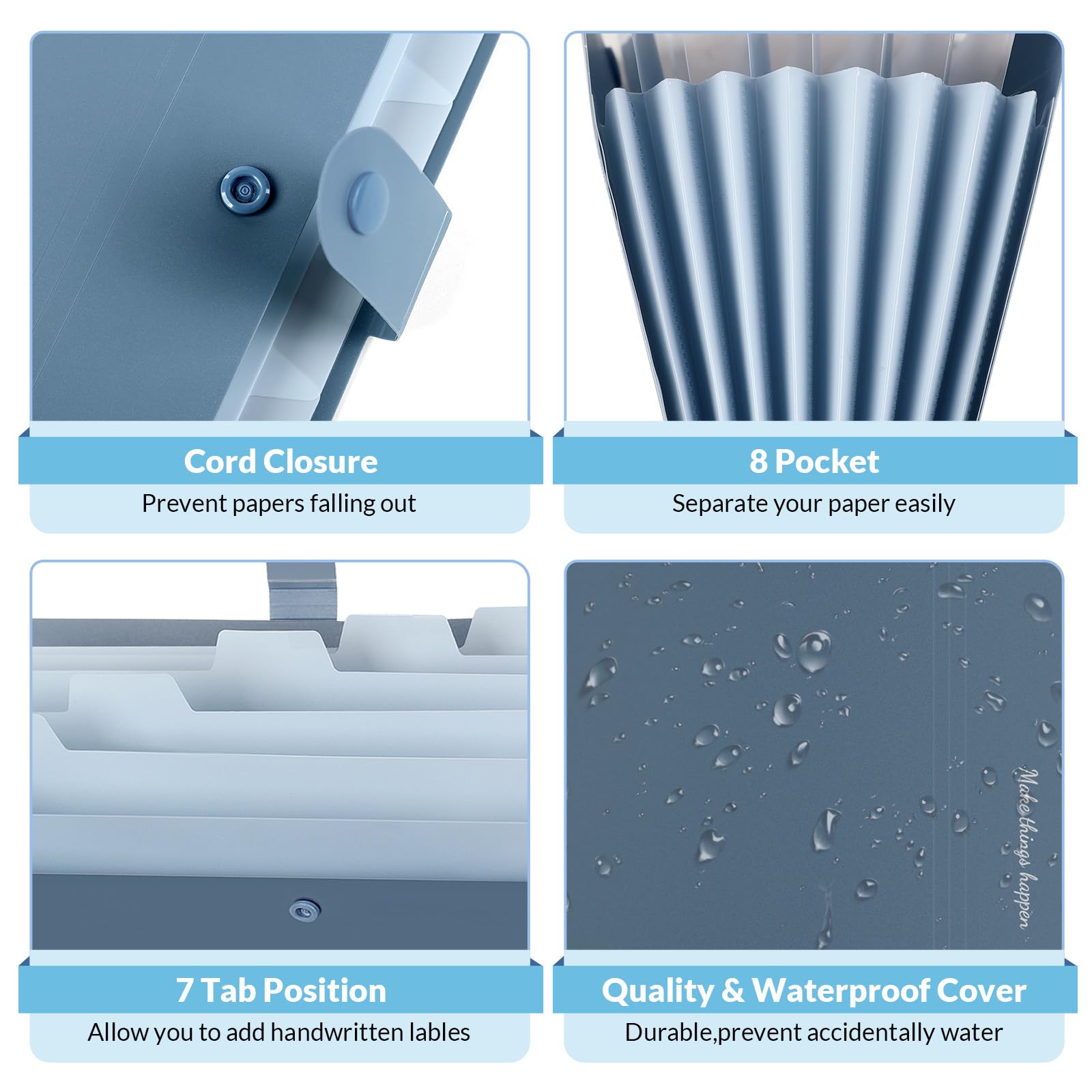 SKYDUE Expanding File Organizer with 8 Pockets, Accordion File Folders with Labels, Portable Document Paper Bill Receipt Organizer, Home College School Office Supplies, Letter Size, Blue