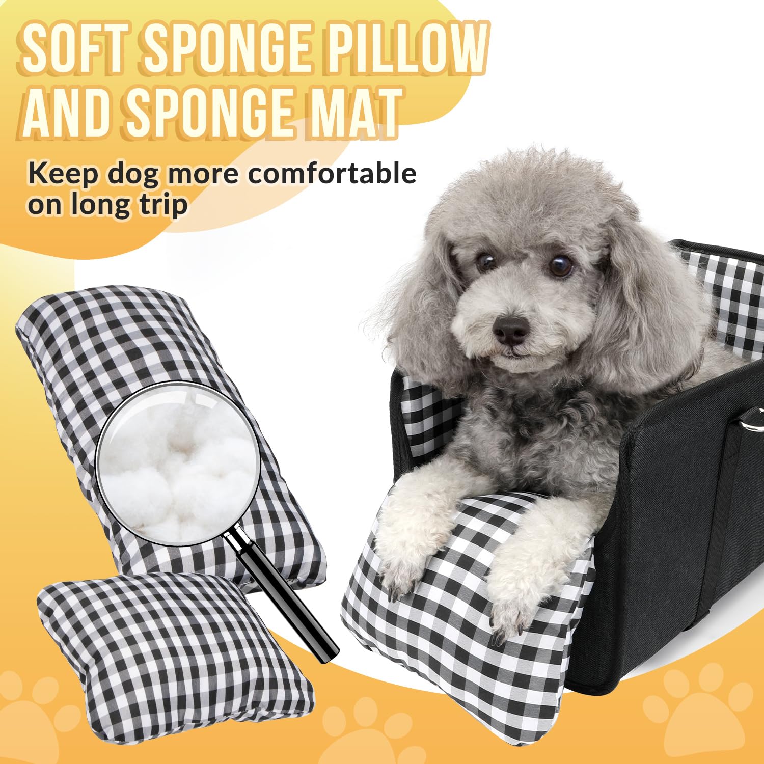 • ๐„๐ฑ๐œ๐ž๐ฅ๐ฅ๐ž๐ง๐ญ ๐’๐ฎ๐ฉ๐ฉ๐จ๐ซ๐ญ --- The dog car seat for small dogs has sturdy plastic support boards, ensuring your dog's safety by preventing collapse or slipping out. It includes two sponge pads for added comfort --- one at the bottom and another as a front pillow. The removable bottom board maintains a flat base
