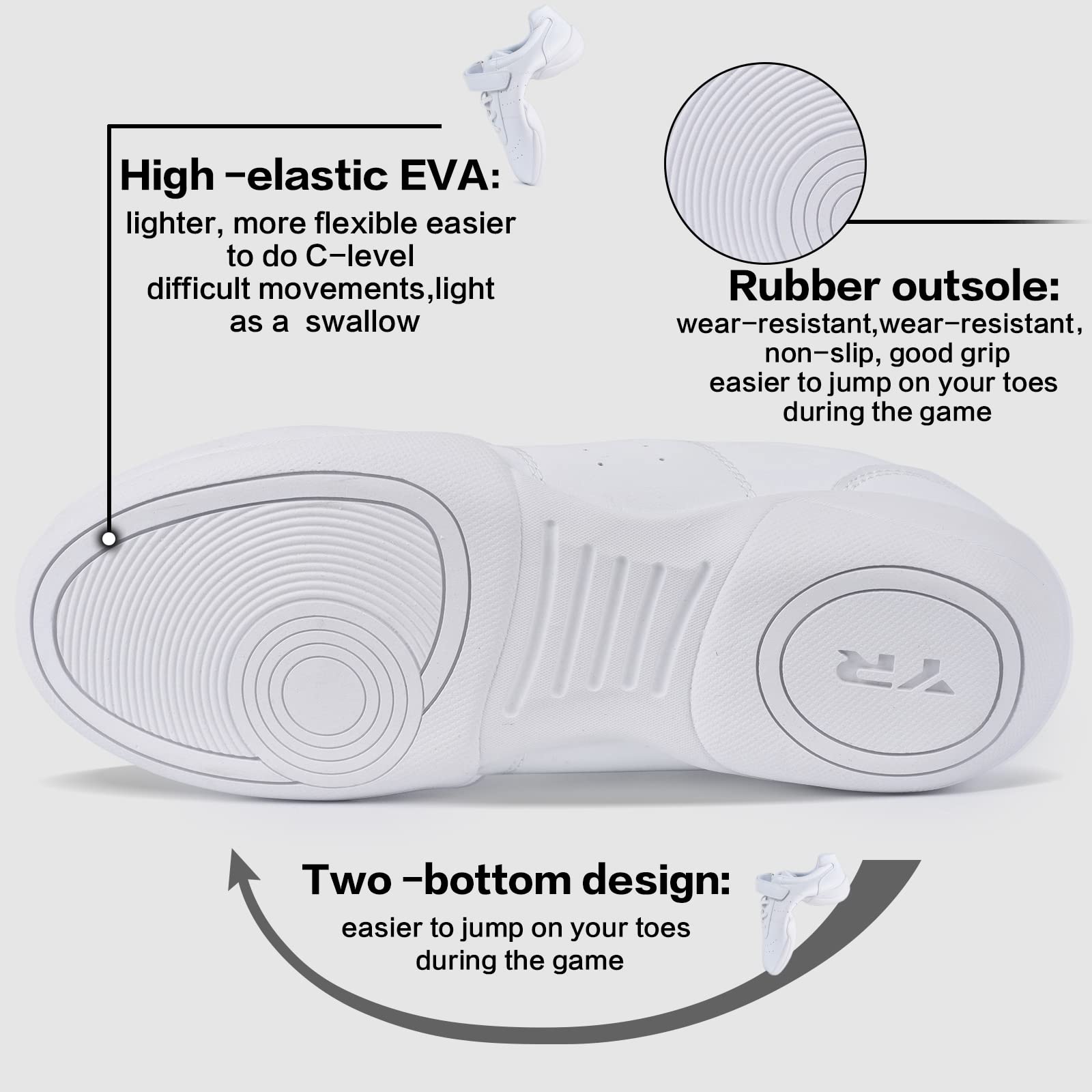 • 【Lightweight & Durable Material】: Soft cheerleading shoes ,spin pad for easier turning and enhanced durability. Featherweight outsole improving the durability through whorl pattern design, exercise is more freedom.