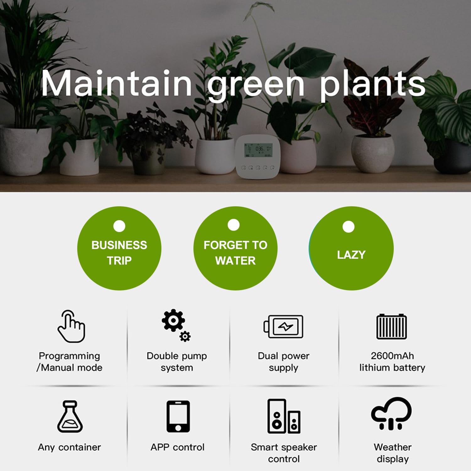 • Strong Water Pressure and Stability:The system has excellent stability and strong water pressure Dual pump operation, able to deliver water to up to 15 pots, even if the plants are far away from the water source can get enough water supply.0305-3