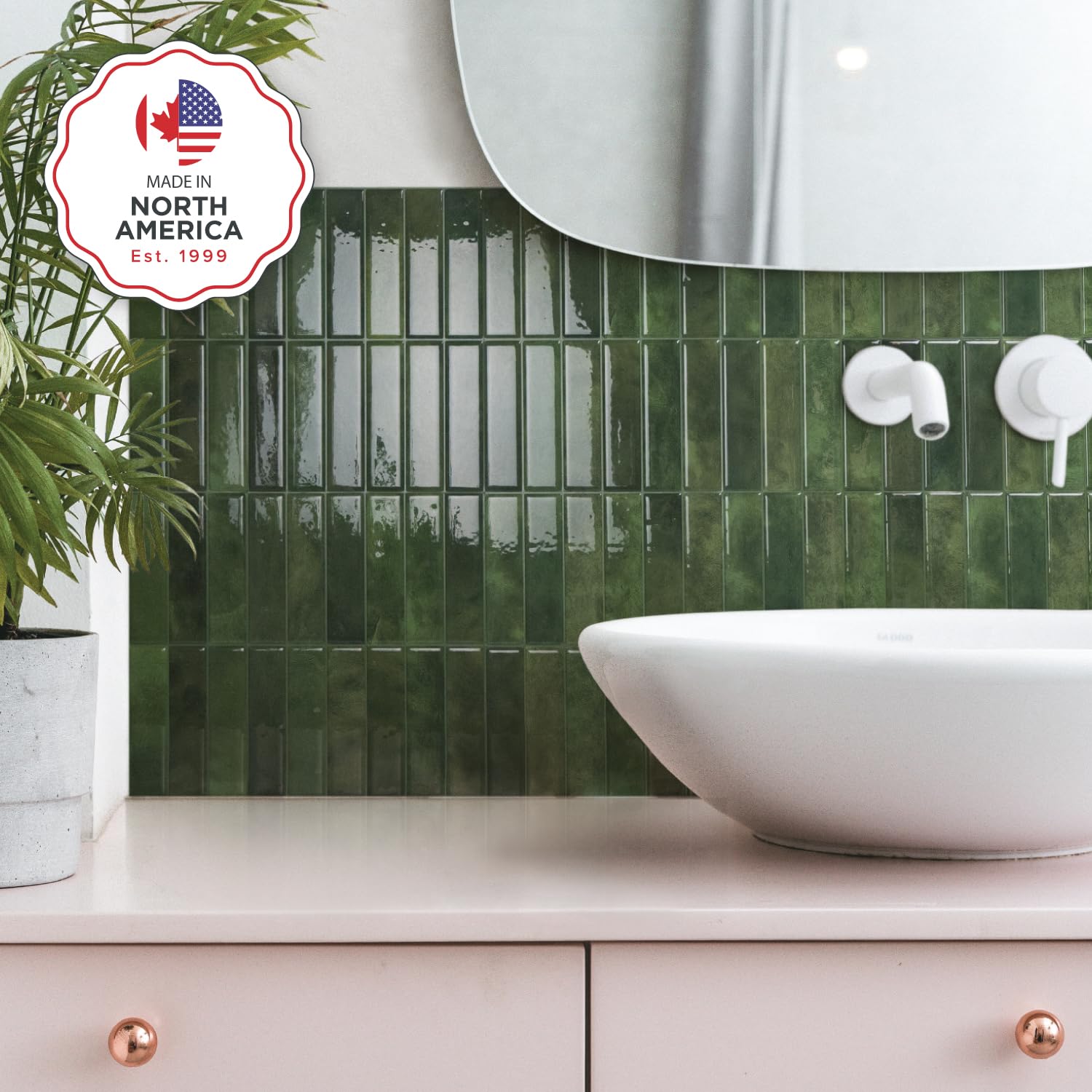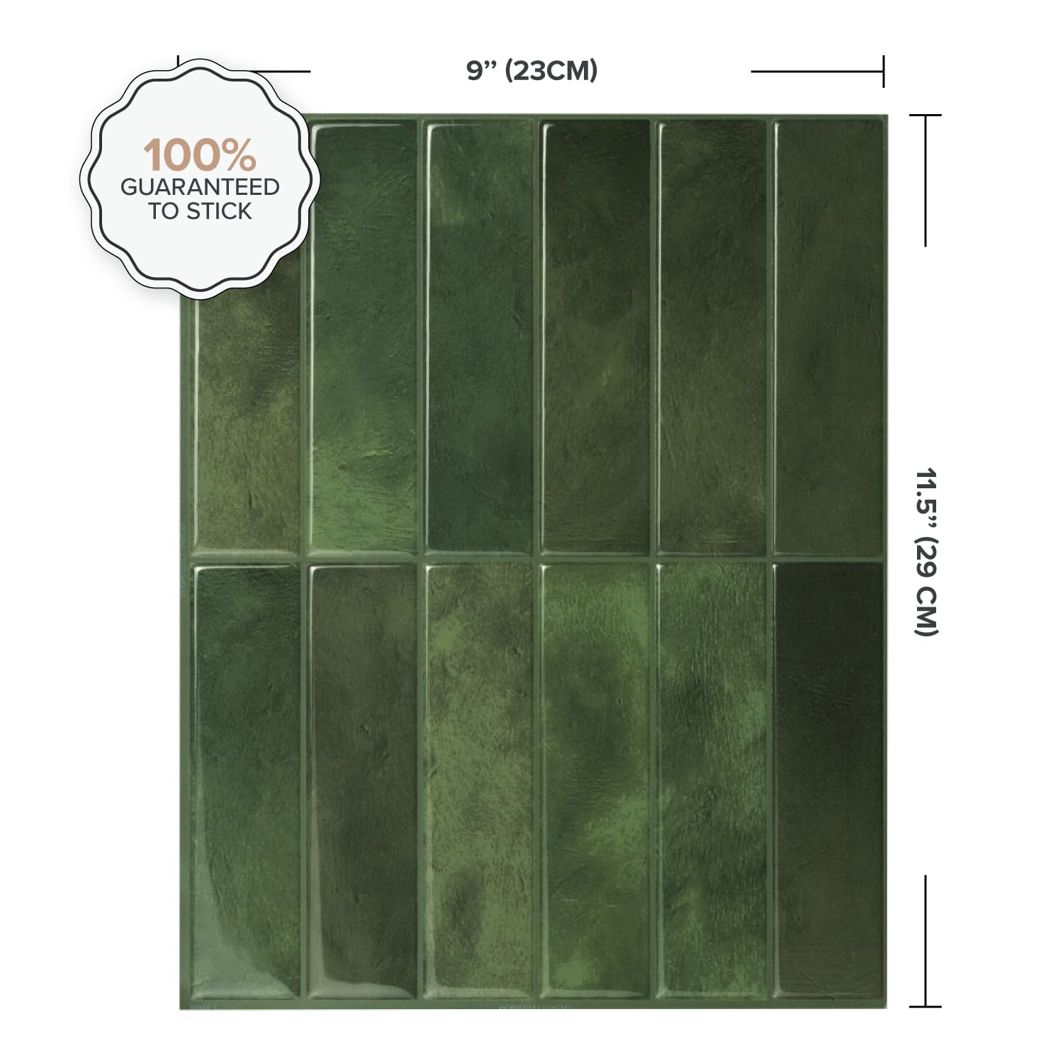 Smart Tiles SMART TILES Peel and Stick Backsplash - 5 Sheets of 11.43'' x 9'' - 3D Adhesive Peel and Stick Tile Backsplash for Kitchen, Bathroom, Wall Tile, Sefrou Green