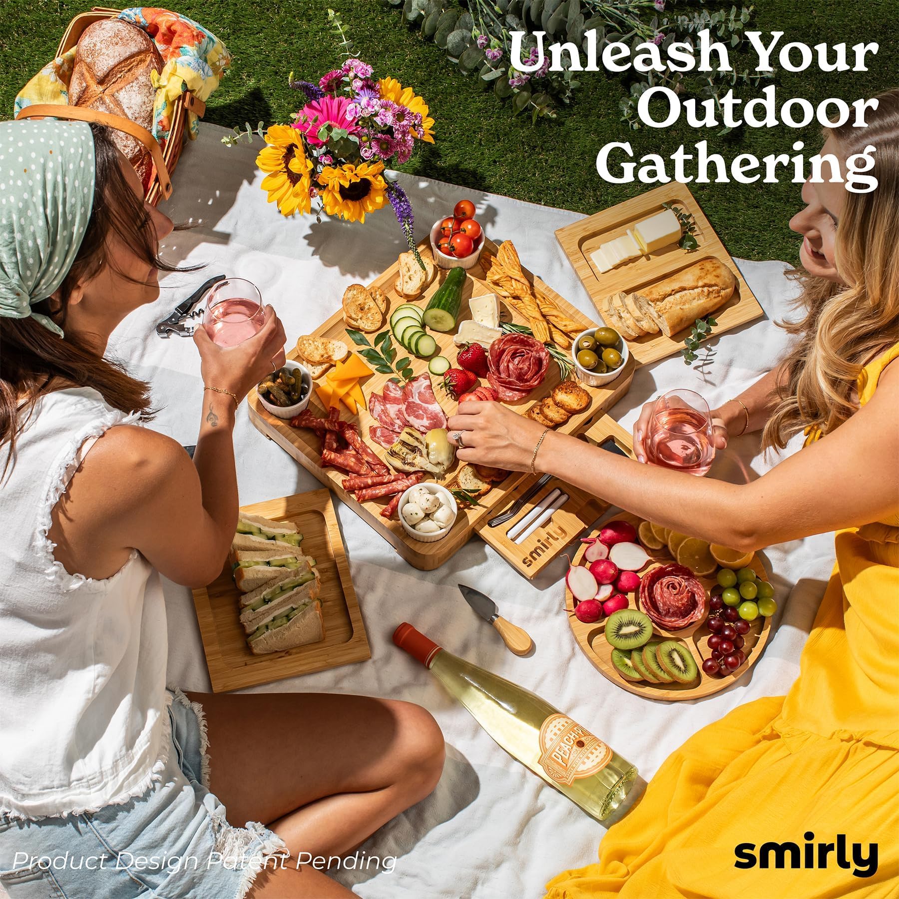 SMIRLY Charcuterie Boards Set - Large Bamboo Cheese Board Set - House Warming Gifts New Home, Wedding Gift for Couple, Bridal Shower Gift, Birthday Gifts for Women