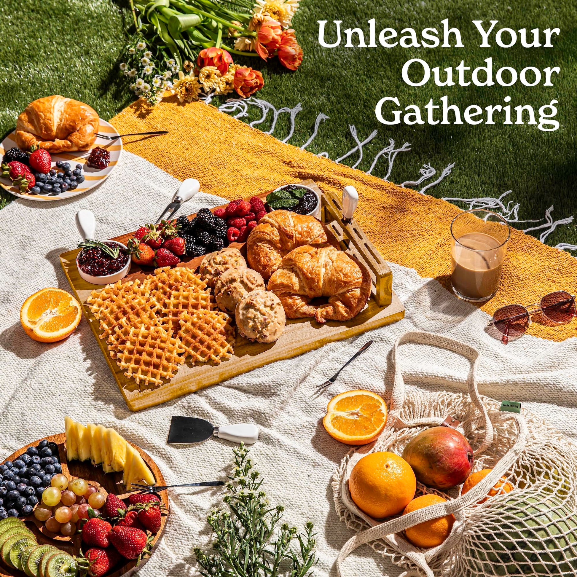 • Unleash Your Creativity - Consider our bamboo cheese board your blank canvas. Design stunning platters with a mix of meats, cheeses, veggies, and fruits, creating a visually appealing and delicious spread for any occasion.