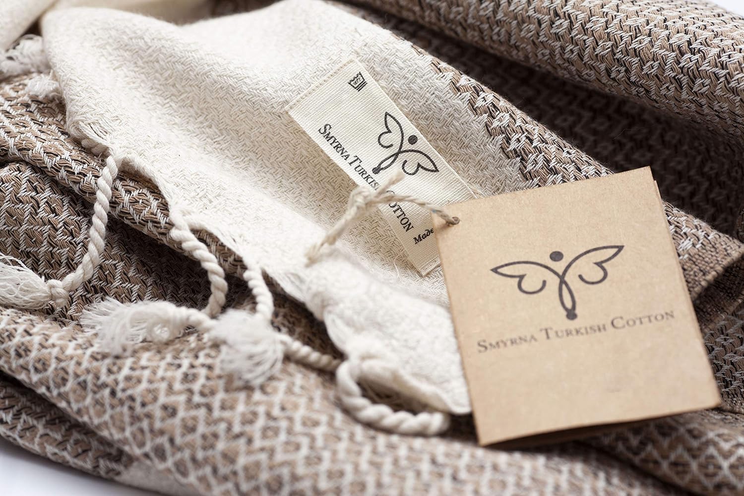 SMYRNA TURKISH COTTON Throw Blanket Vintage Series, 50x60 inch, Outdoor Blankets, Throws and Blankets for Couch, Sofa, Bed, Chair, Beach Picnic, Travel Boho Turkish Blanket Throw, Latte