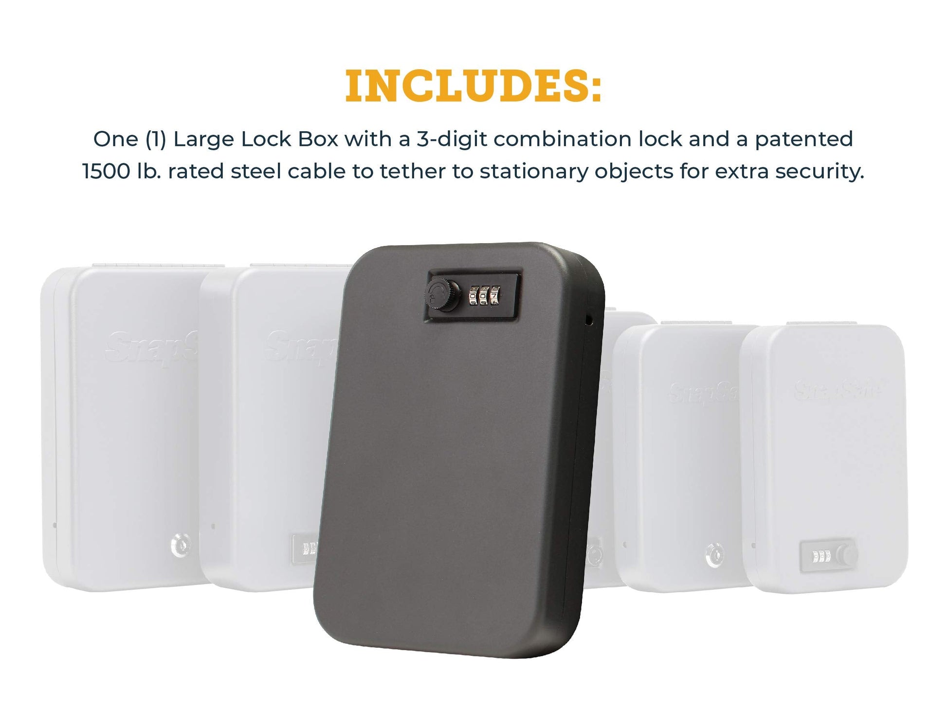 SnapSafe Portable Combination Lock Box for Guns and Valuables - Includes Lock Box (with 3-Digit Combination Lock) and Patented Security Cable - An Ideal Car Gun Safe - Large, 9.5 x 6.5 x 1.75 Inches