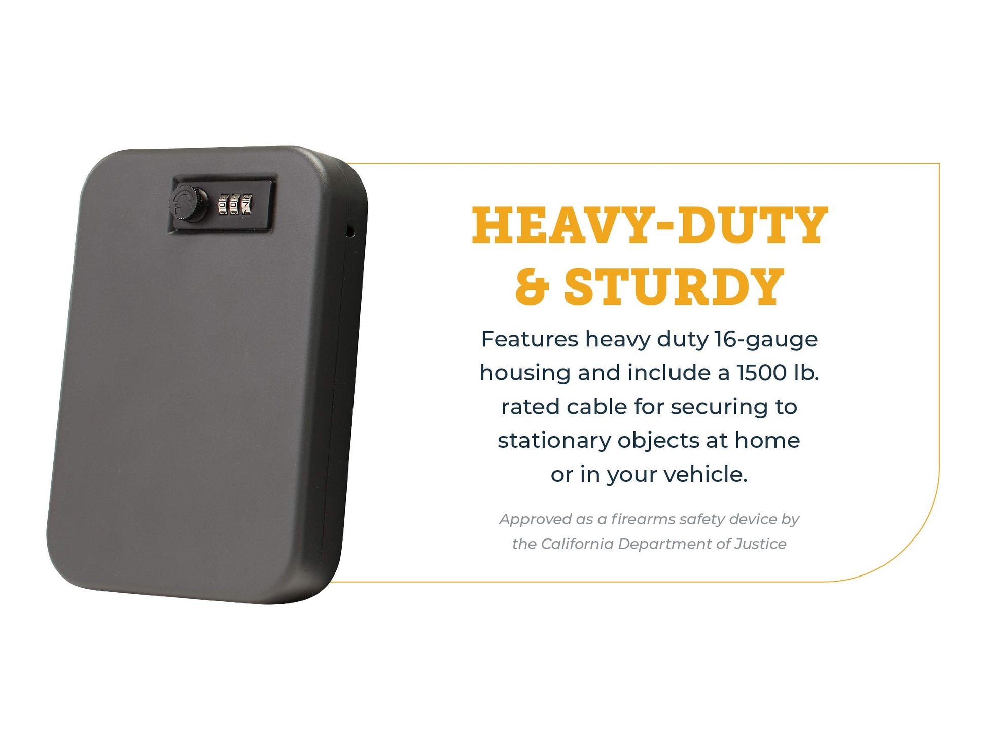 • Heavy Duty and Sturdy – This SnapSafe Lock Box features heavy duty 16-gauge housing and include a 1500 lb. rated cable for securing to stationary objects at home or in your vehicle. Available in 3 sizes - Large, XL and XXL