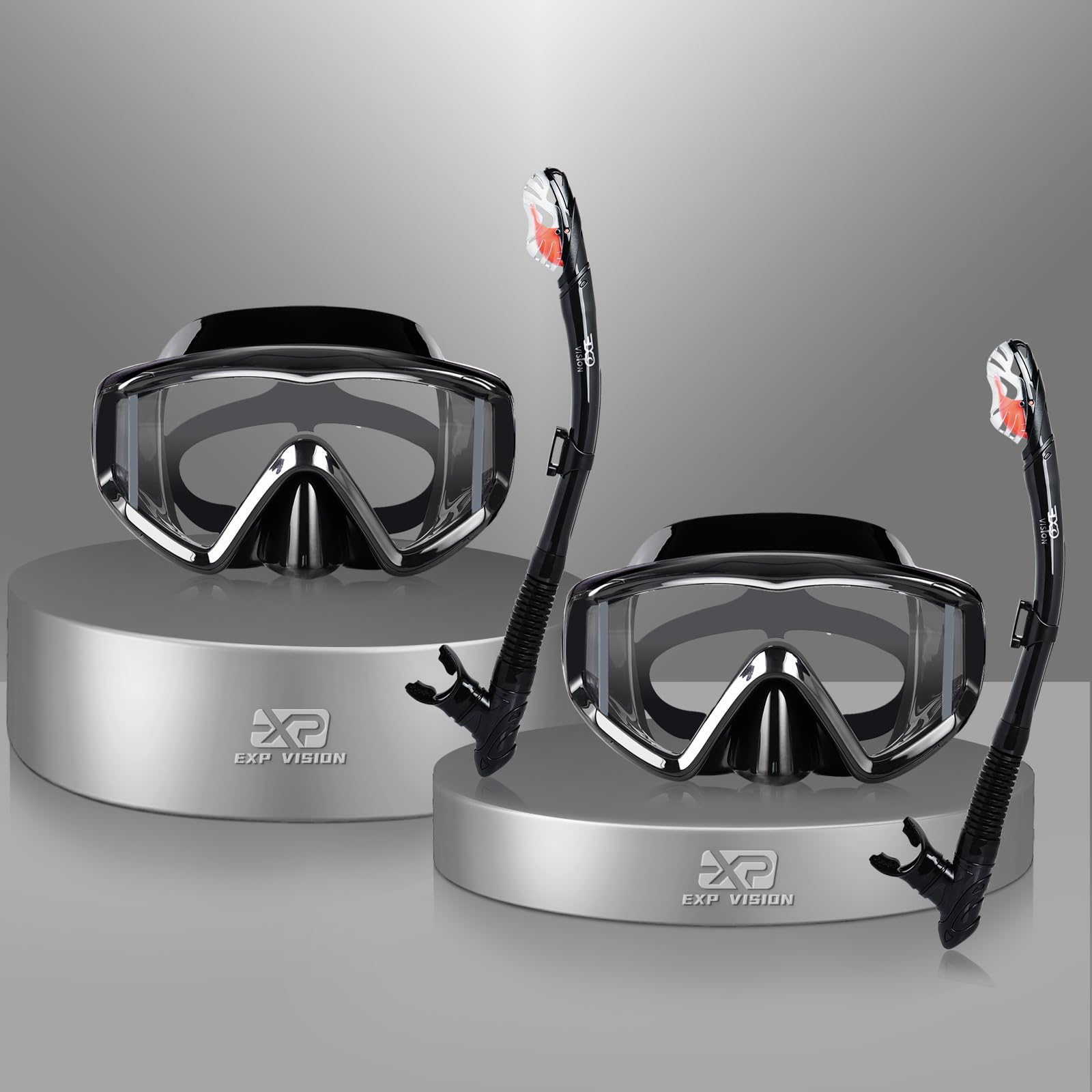 • 【Diving Mask Snorkel Set】 EXP VISION dry snorkel set, Pano 3 window diving mask and dry top silicone snorkel, it's the ultimate travel companion and is suitable for snorkeling, swimming, body surfing, boogie boards and much more.