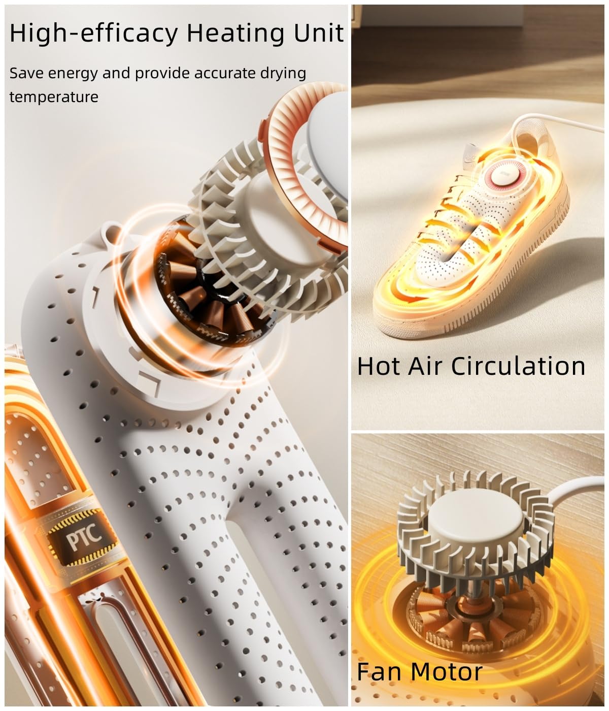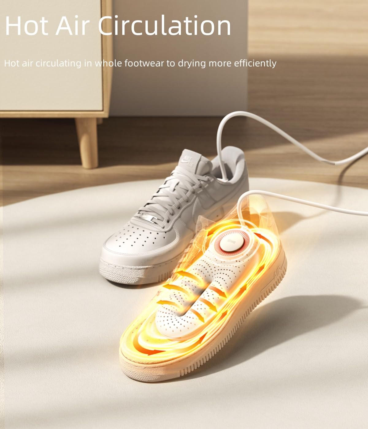 • 360° Heat Distribution: 1532 evenly placed air holes on each heating pod ensure uniform heat distribution, accelerating moisture evaporation and drying shoes of all types efficiently.