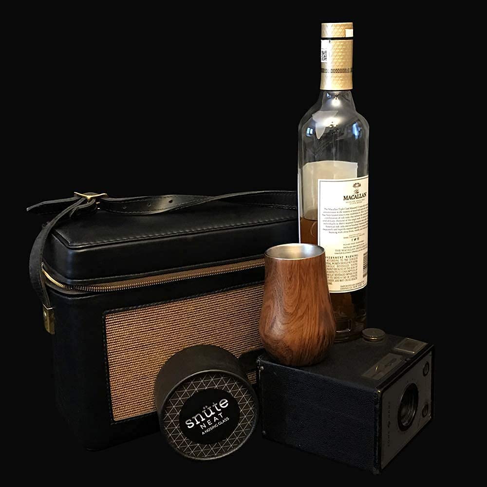 Snute Double-Wall Insulated Whiskey Glass – Stemless Nosing Glass for Bourbon, Scotch & Whisky – Wood Finish – Gift for Men, Dad, Whiskey Lovers (Set of 2)