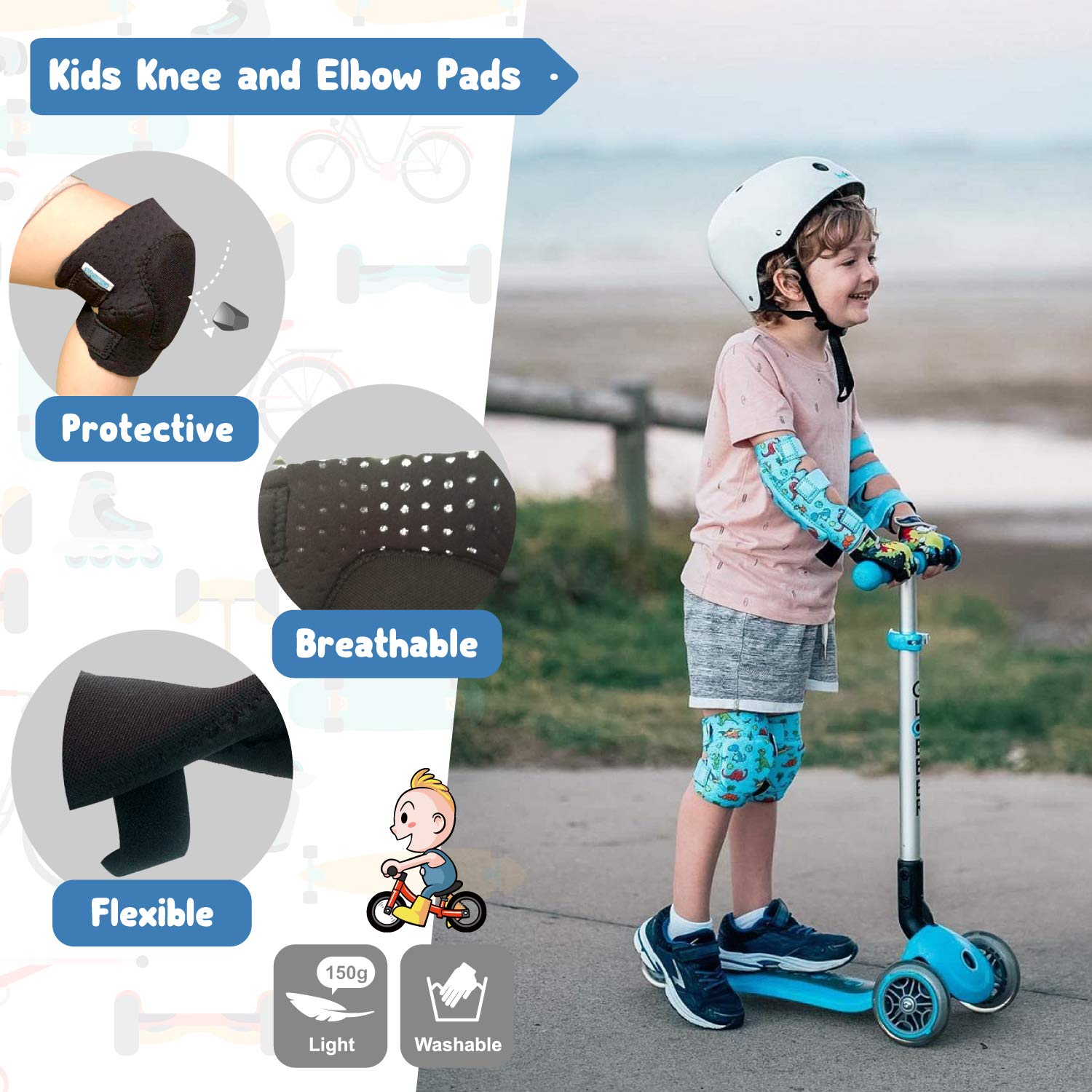 Soft-Style Kids Knee and Elbow Pads with Bike Gloves, Flexible Impact-Resistant Gear for Ages 2-11, Designed for Balance Bikes, Roller-Skating, and Skateboarding (Dinosaur, Small)