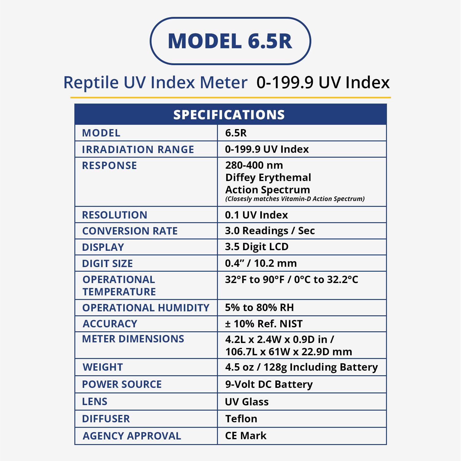 Solarmeter Model 6.5R Reptile UV Index Meter, Handheld Digital Radiometer for Measuring Ultraviolet Light, Measures 280-400 nm with Range from 0-199.9 UV Index, Made in USA, ABS Polymer, Black