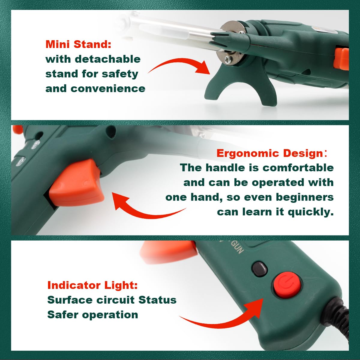 • All-in-One Kit: Includes 5 essential tools (welding gun, solder wire, nozzles, cleaning sponge, and stand) for a complete workspace setup. Compact and portable for on-site jobs